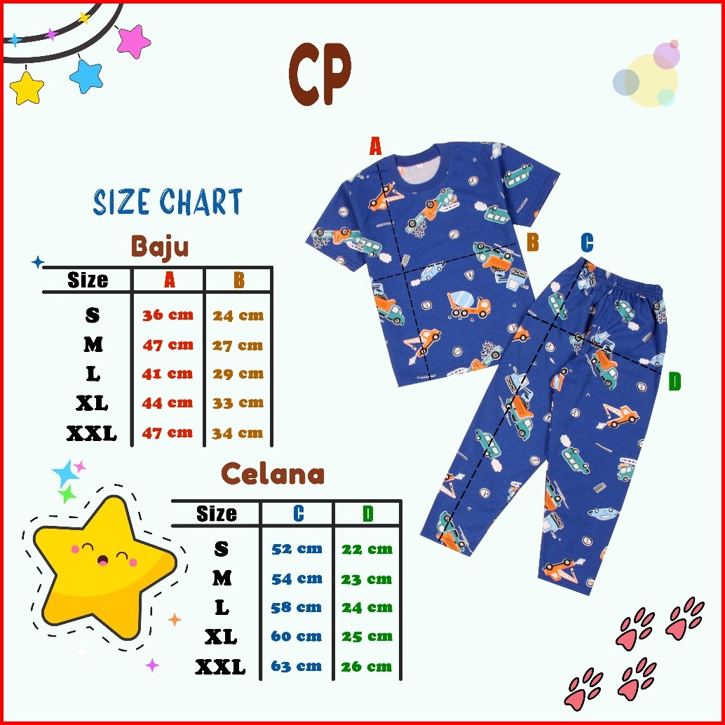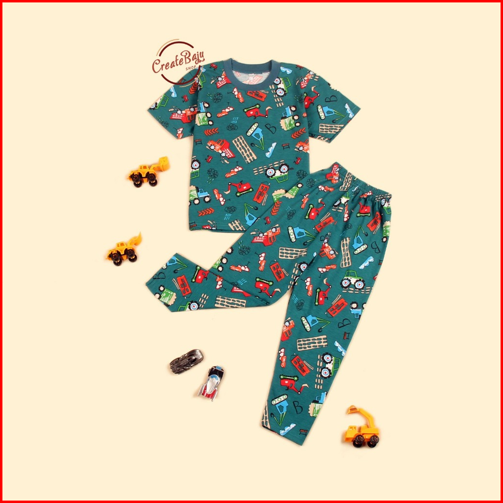 Cp Setelan Anak Laki 1-7 Tahun Excavator Baju Tidur Anak Lengan Pendek Terlaris