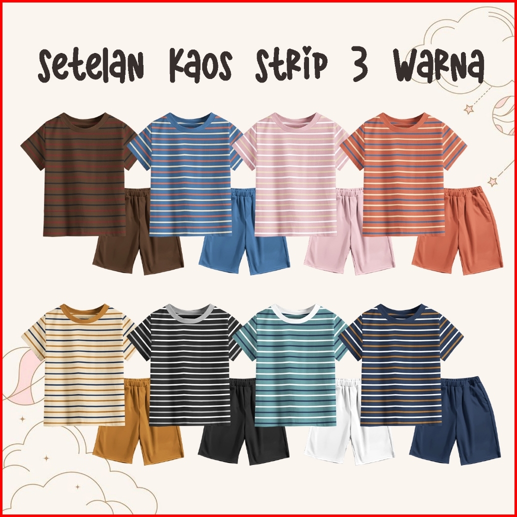 Setelan Strip Anak 3 Warna Laki Laki Perempuan