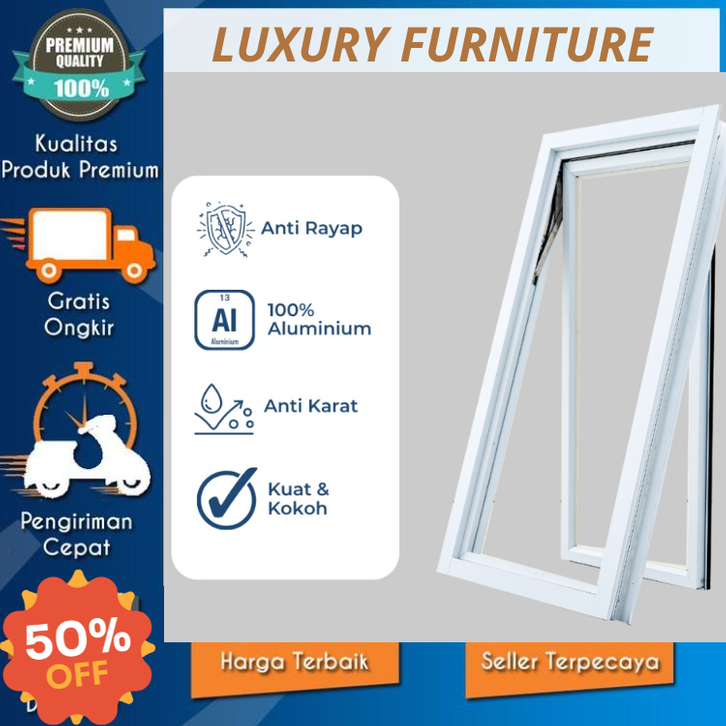 Jendela Aluminium Sliding Kaca Kamar Rumah Dapur 100x50 lengkap tinggal pasang khusus instan Terbaru Best Seller