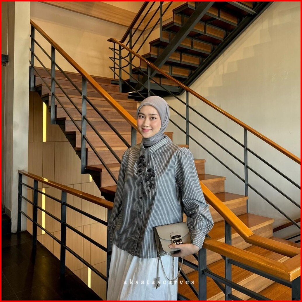 Aksatascarves - Kylana Blouse Elegan Katun Stripe