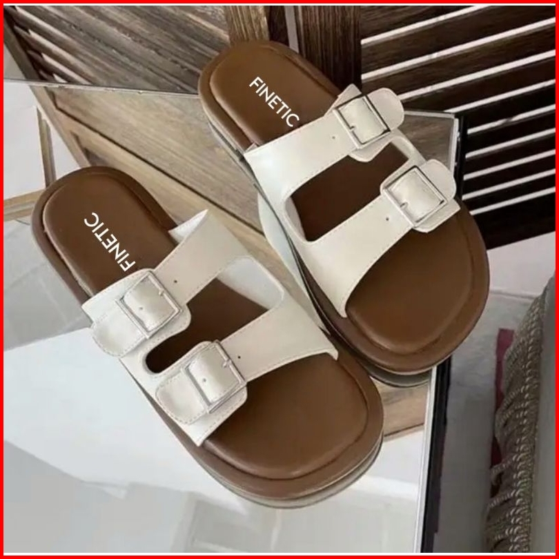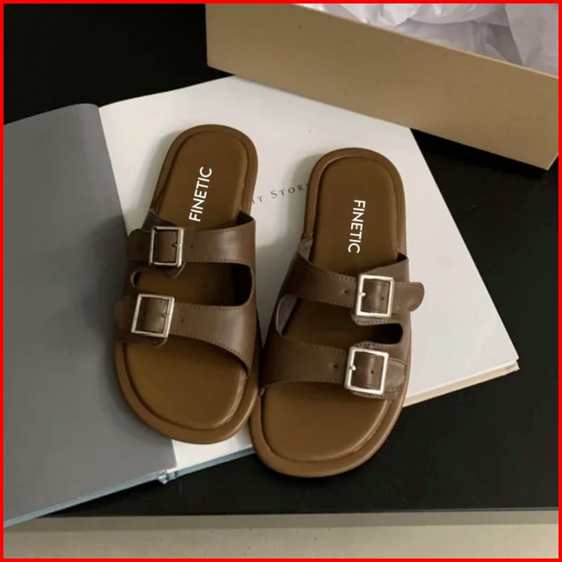 Finetic Sandal Kasual Wanita Model Terbaru Anti Slip Sendal Flatbed Cewek Karet