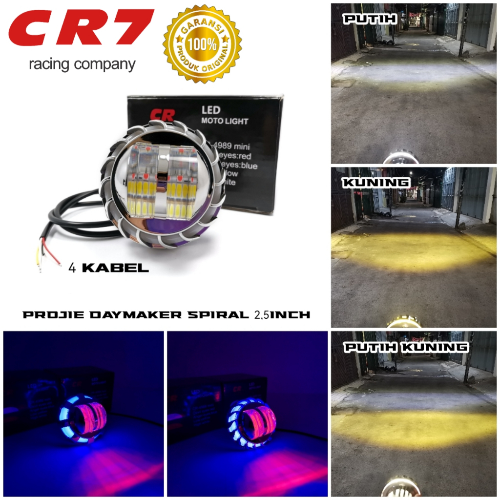 CR7 Lampu Utama Projie 2 Lensa 2.5inch High Low Putih Kuning Model Spiral