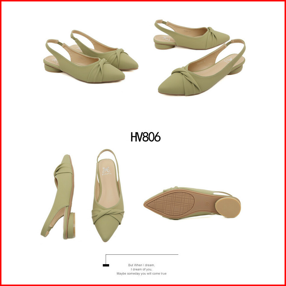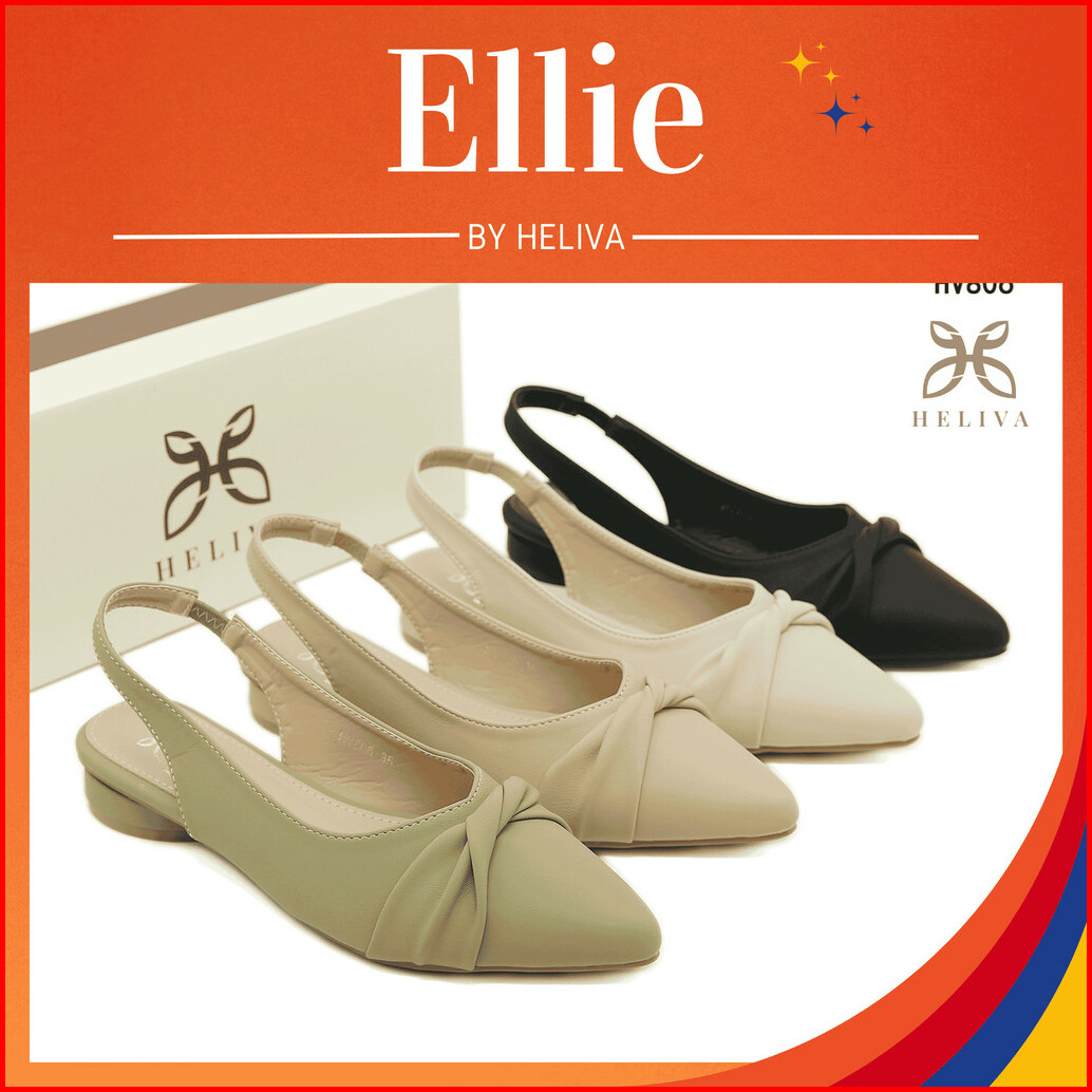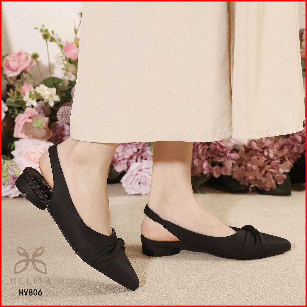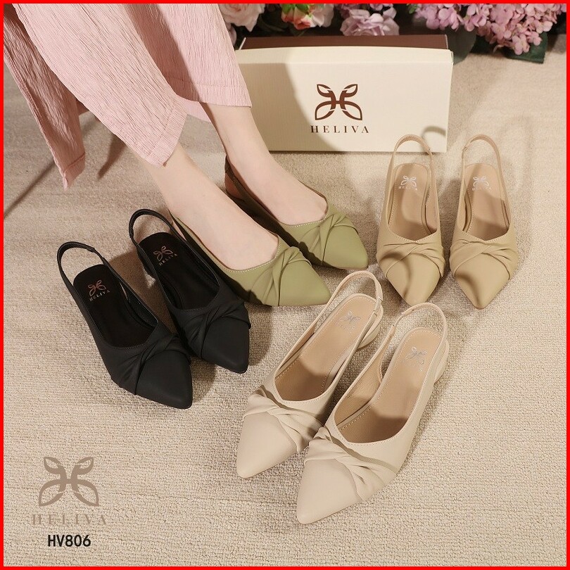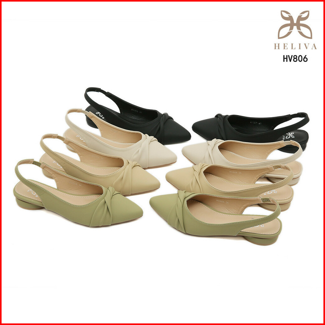 Heliva Ellie Mules Shoes Sling Back Kulit Doff Hak Oval Sol 2cm Hv806