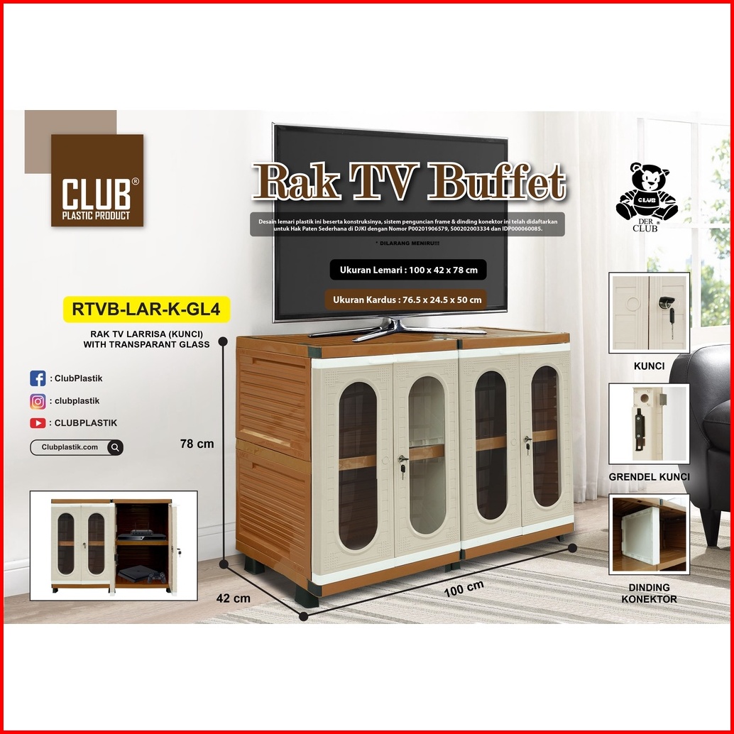 Club Rak Tv Buffet Larissa Dengan Kunci Dan Kaca - Rak Tv Minimalis - Rak Tv Plastik - Meja Tv Minimalis - Rak Tv Modern