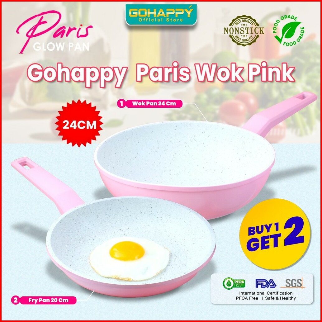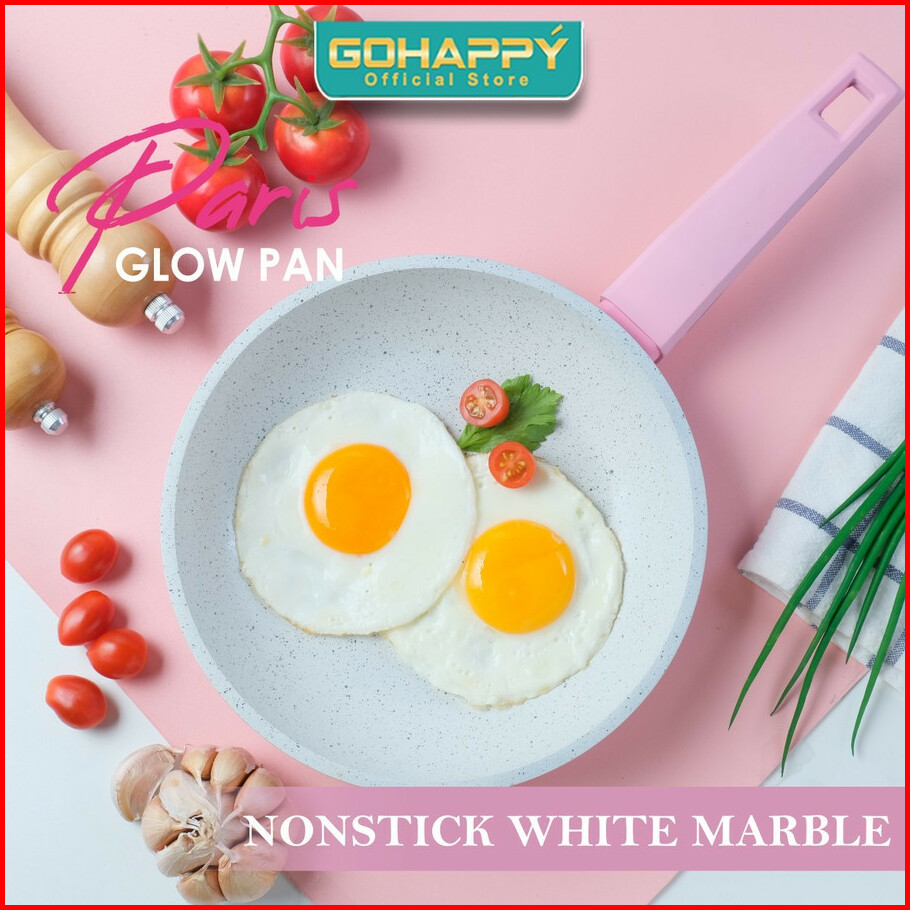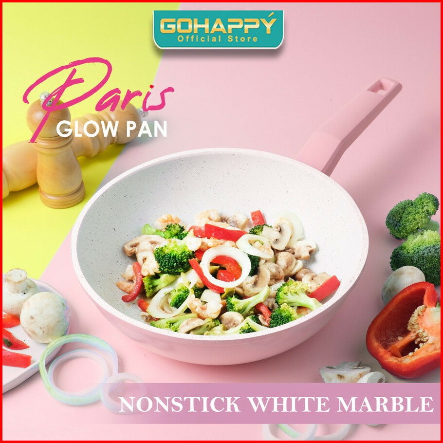 Beli 1 Gratis 1 Panci Paris Glowpan Cookware Set Gohappy Anti Lengket White Marble Coating