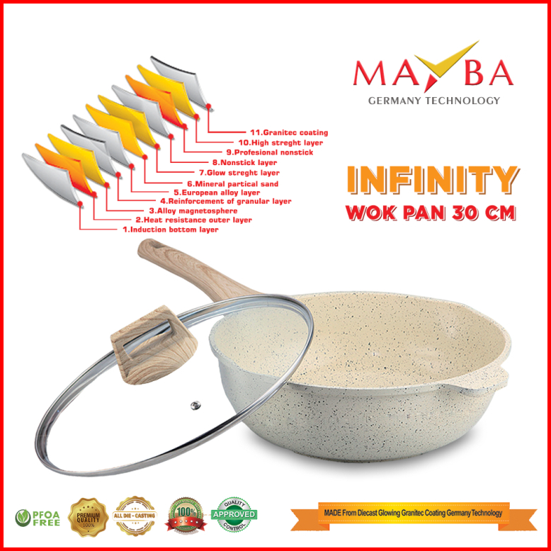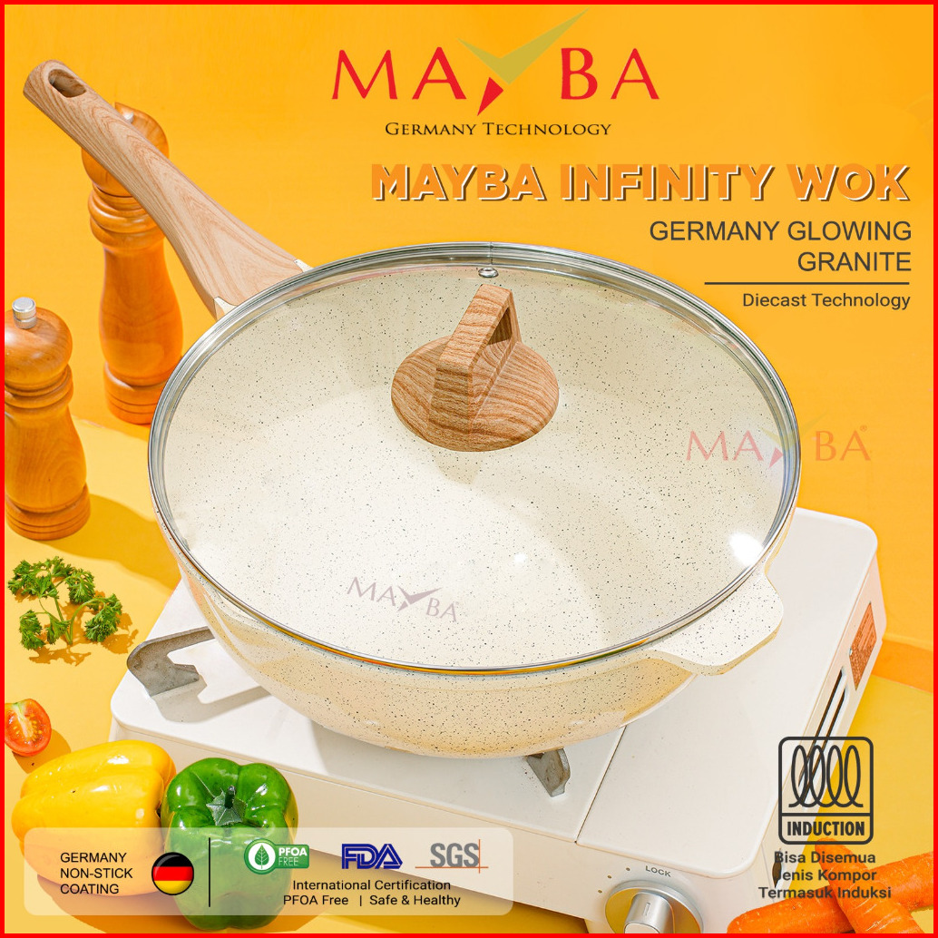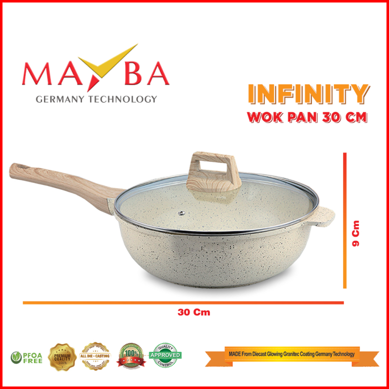 Trendnow Wok Pan 24cm Mayba Infinity 3x Lebih Tebal Panci Plus Tutup Kaca Wajan Kuali Penggorengan Jerman Granit Glowing