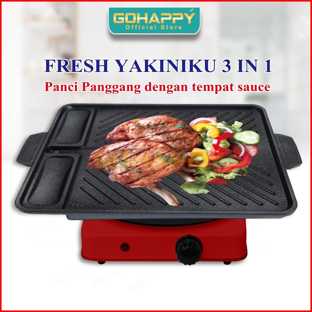 Fresh Yakiniku Barbecue Alat Grill Pan 3 In 1 - Panci Ada 2 Wadah Saus