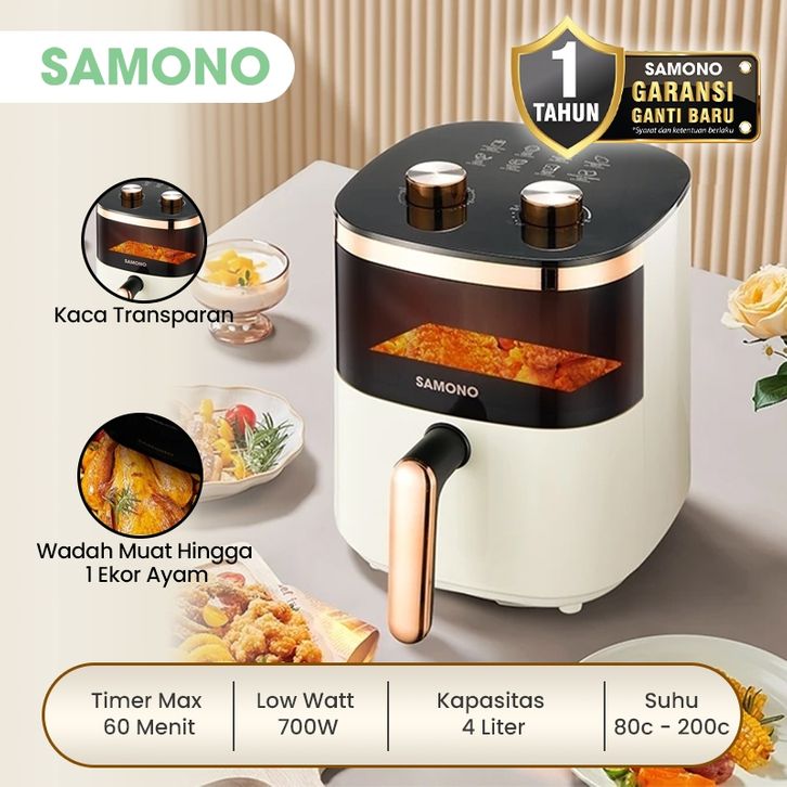 Air Fryer Low Watt Samono Transparan 4Liter 700 Watt SNI Hemat Daya Kapasitas 4Liter SW-AFW04S Official Store