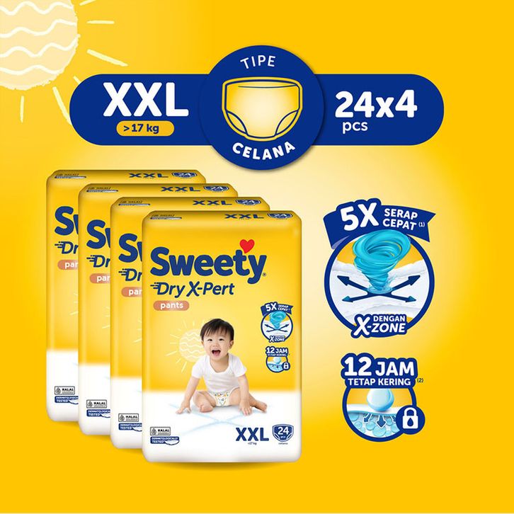 Pampers Pempers Sweety Bronze Pants XXL 24 Popok Celana Bayi 4 Packs