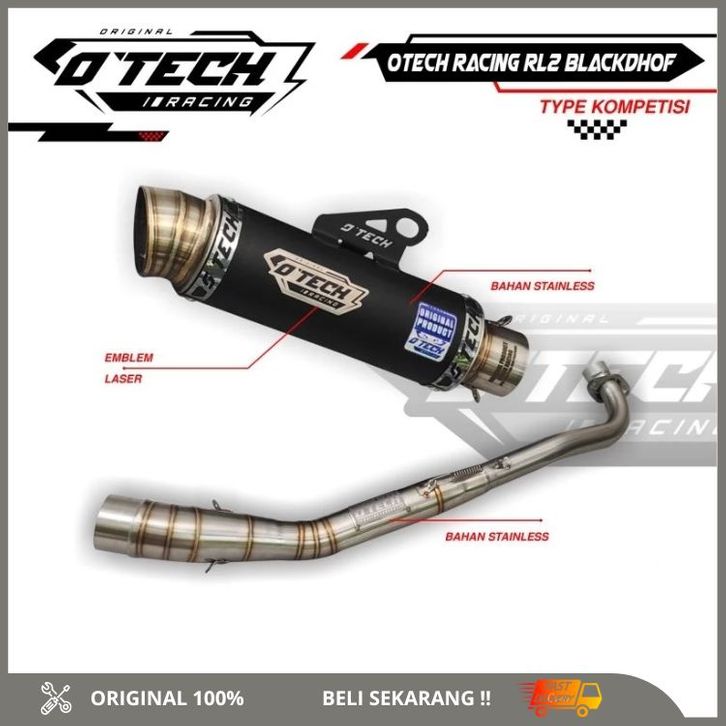 [Star] Knalpot Racing Otech Original Black Doff Short Fullsystem Jupiter, Vega, Supra, Blade, Karisma, Smash, CS1 pnp