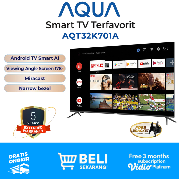 tv smart 32 inch AQUA Elektronik TV 32 inch AQT32K701A - 32 Inch Smart TV Android - HD - Google Play - Bluetooth - Chrom