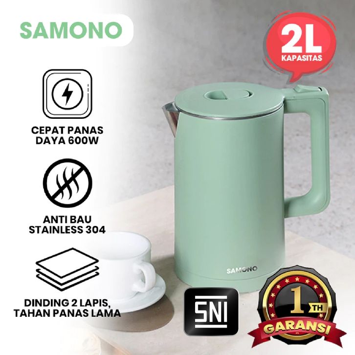 SAMONO Electric Kettle Teko Listrik Pemanas Air Kapasitas 2 Liter Lapisan Ganda Water Heater SW-EKS17B