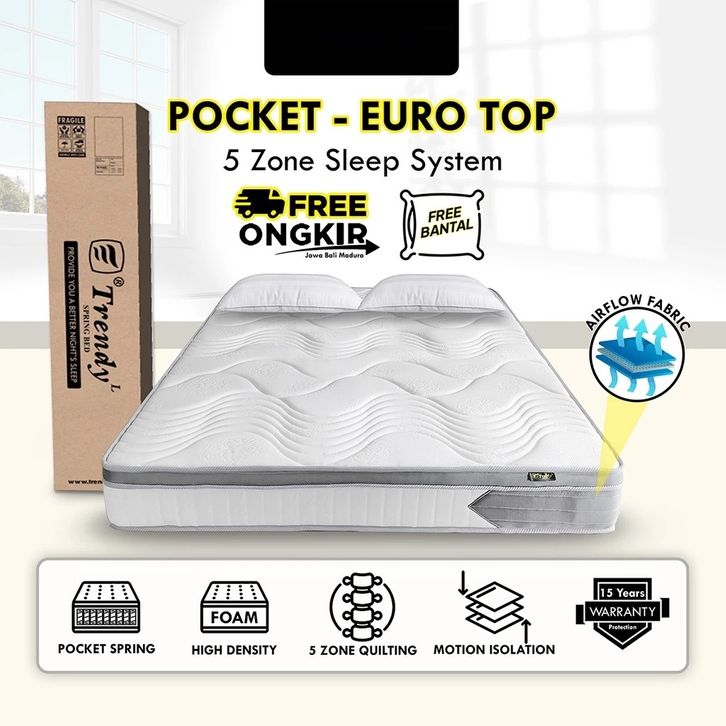 Trendy Pocket Spring Euro Top 28cm - Kasur Spring Bed Vacuum Press Roll - Mattress Kasur Dalam Box