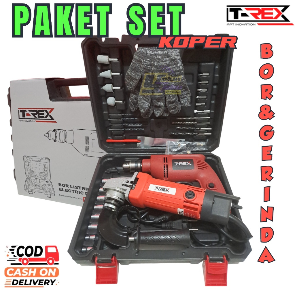 PROMO DISKON PAKET GERINDA + BOR 10MM VARIABLE SPEED / GERINDA TANGAN / MESIN BOR BOLAK BALIK TERLARIS