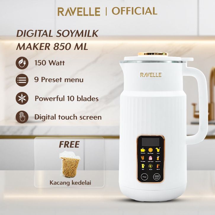 RAVELLE VANTE Digital Soy milk Maker 850ml Suara Halus Korean Style 9 in 1 - Mesin Multifungsi Pembuat Susu Kacang Kedel