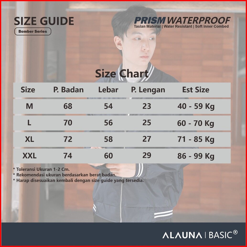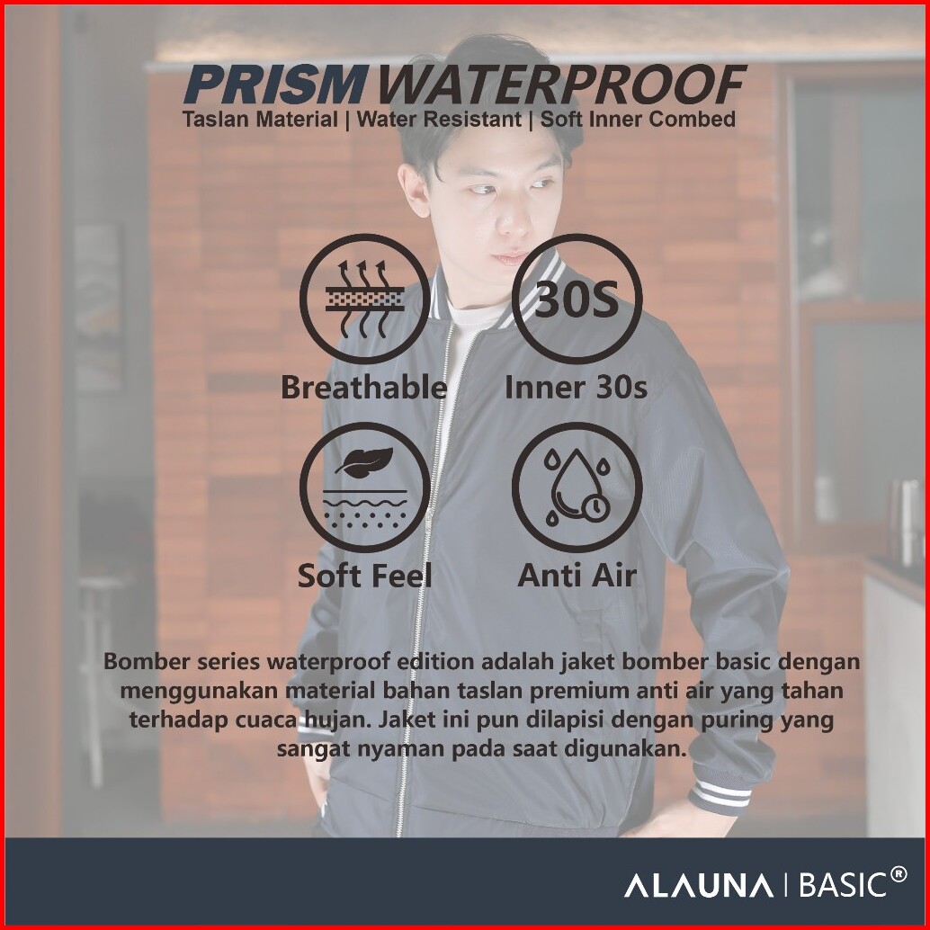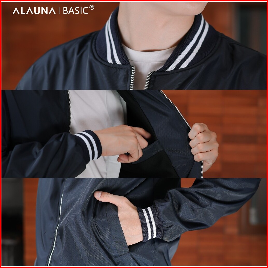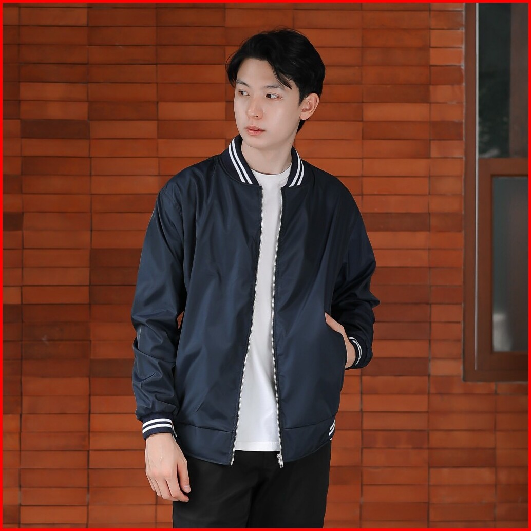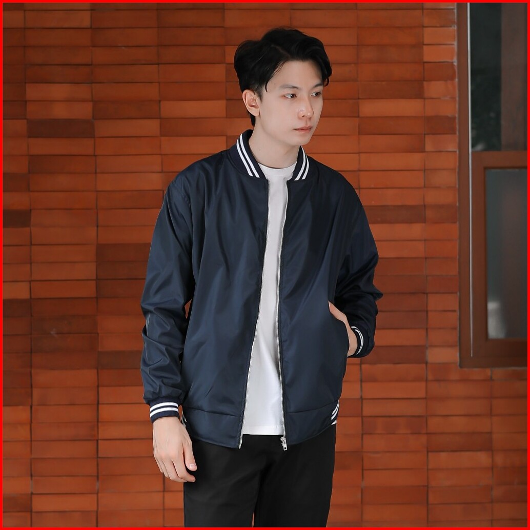 Alauna Basic - Jaket Bomber Pria Bahan Taslan Waterproof Anti Air Basic Premium List Stripes Navy