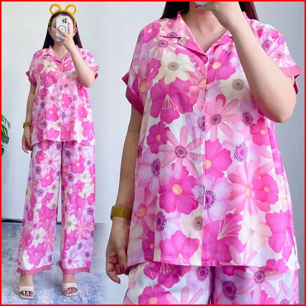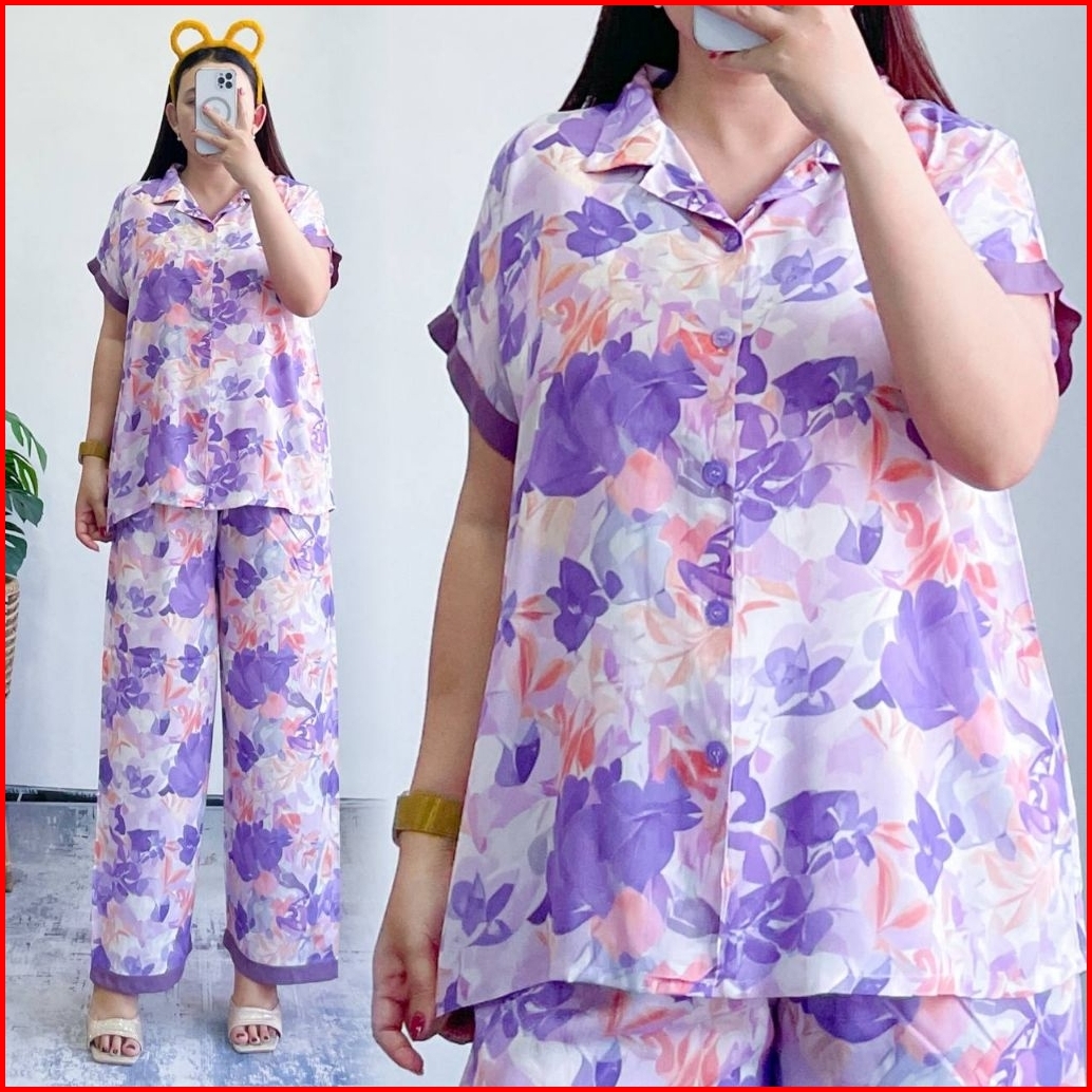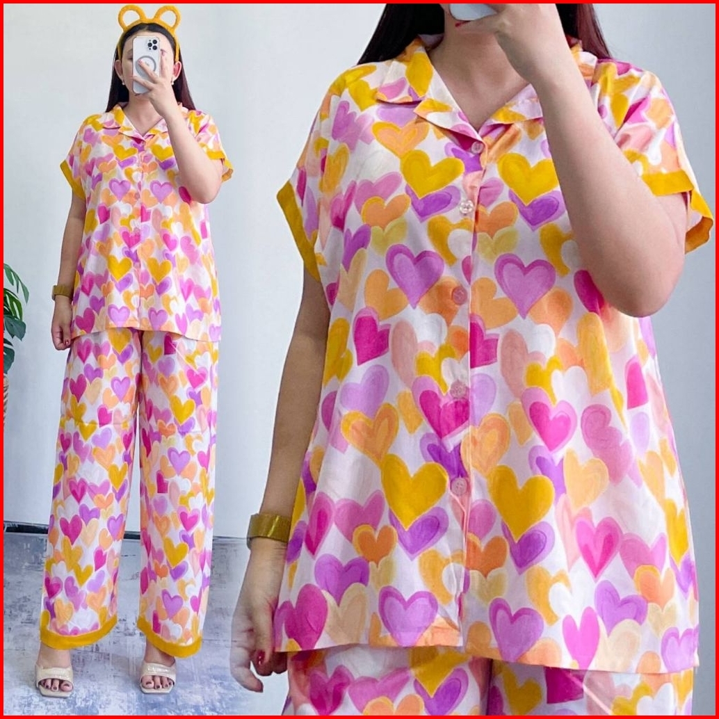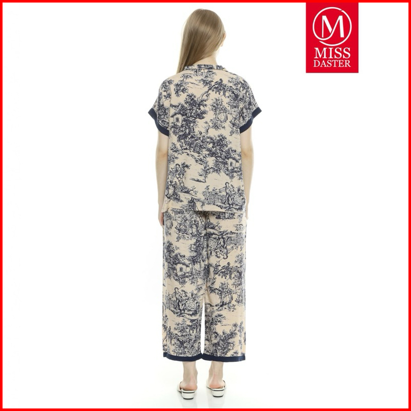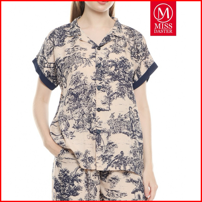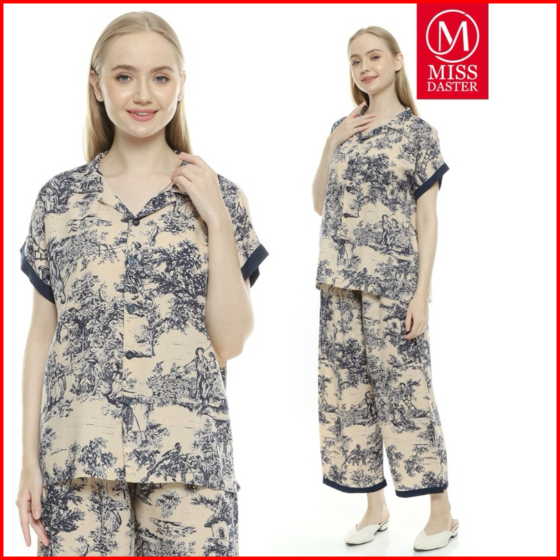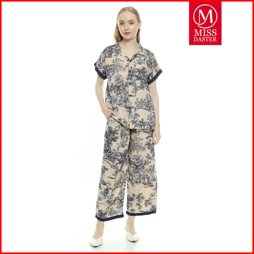 Missdaster - Piyama Kancing Rayon Motif Kombinasi Polos