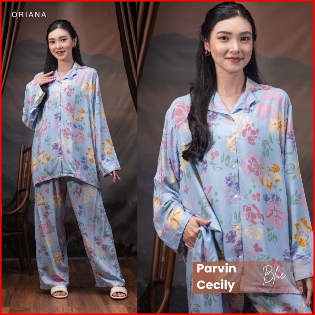 Oriana Sleepwear Piyama Long Sleeve Parvin Collection Sizing I Baju Tidur Pajamas Set Lengan Panjang Sizing