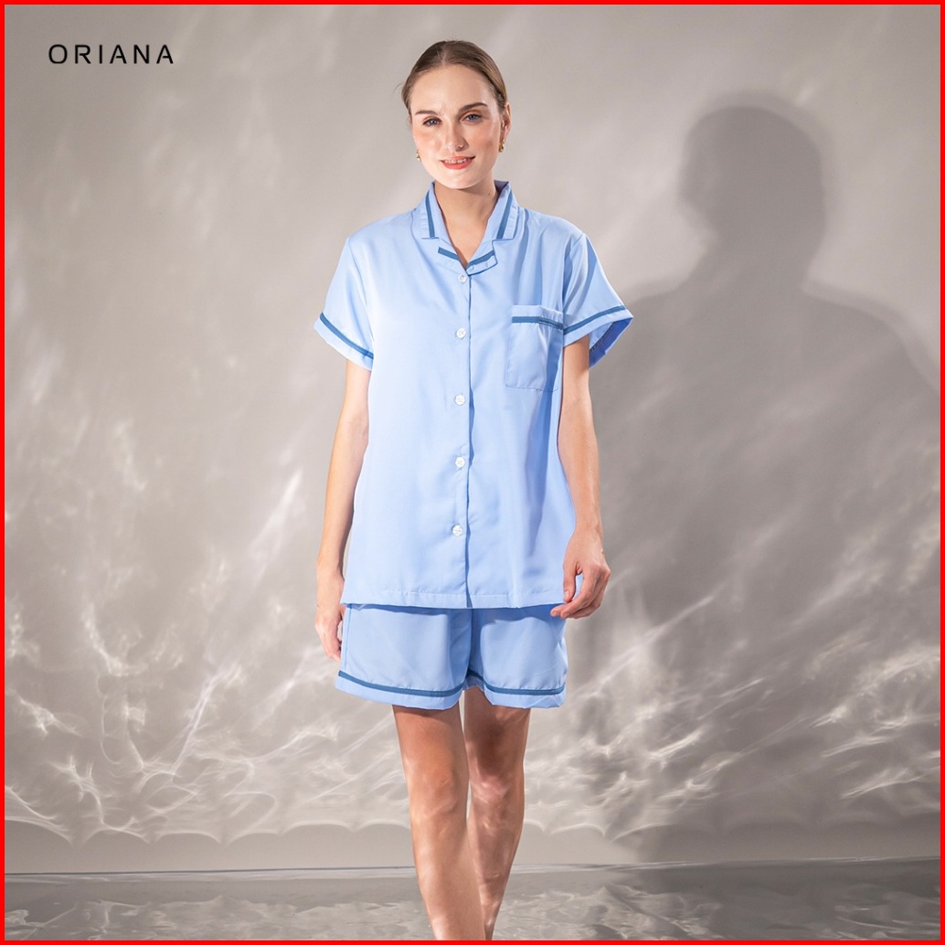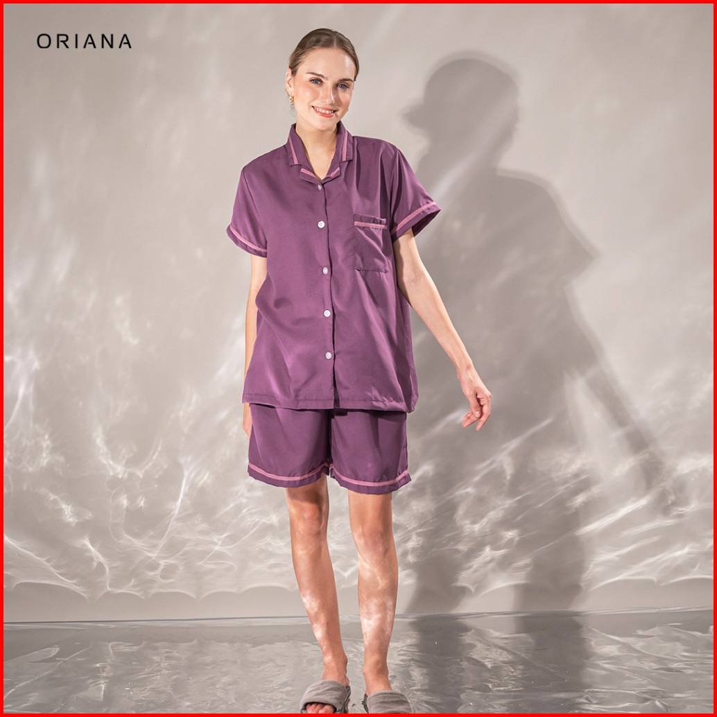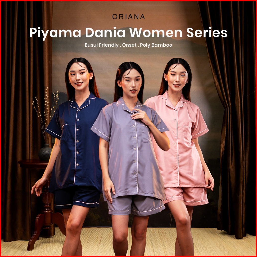 Oriana Piyama Set Poly Bamboo Pamelyn Dania Woman Series Baju Tidur Premium Wanita Tangan Pendek Sizing