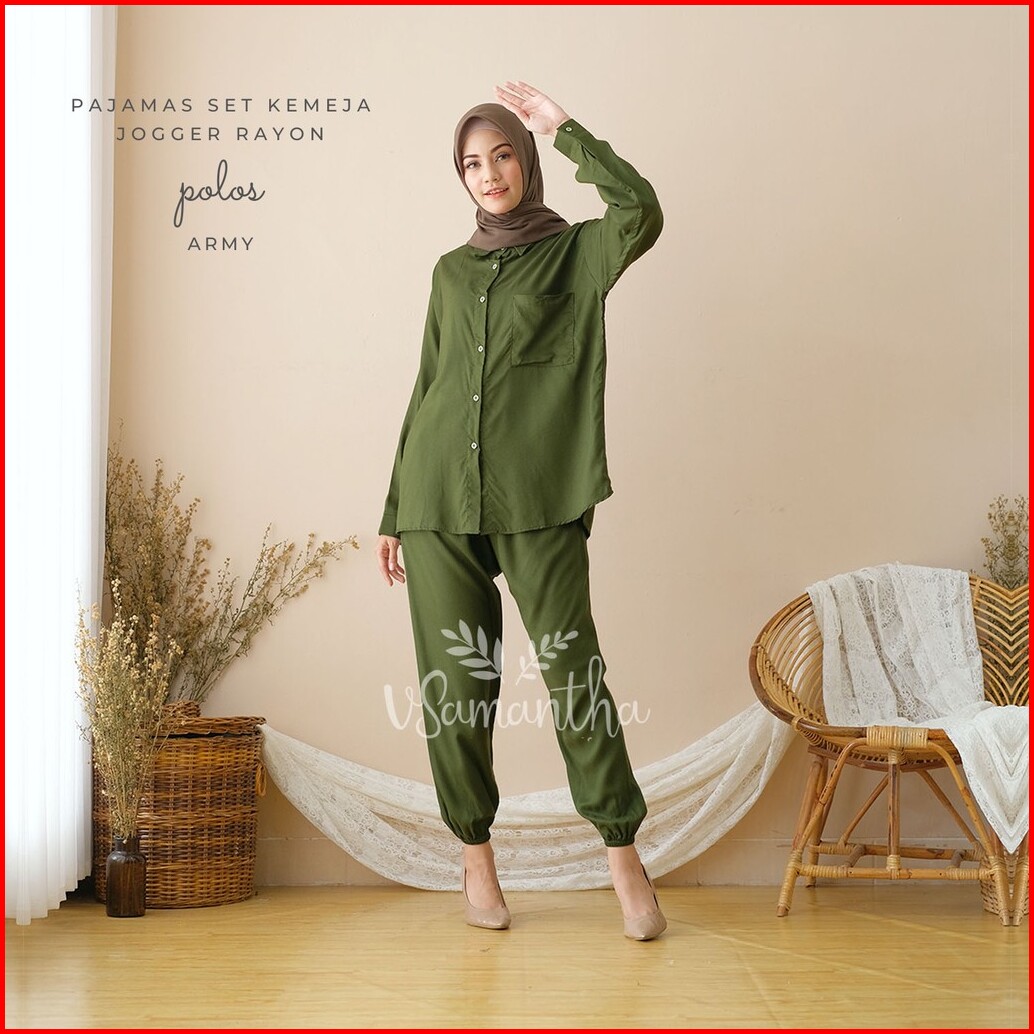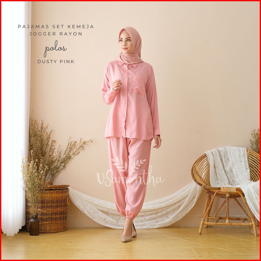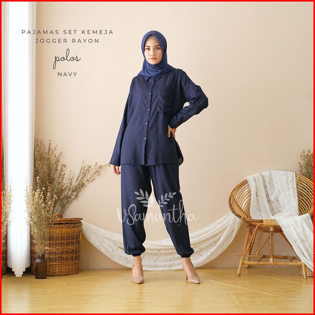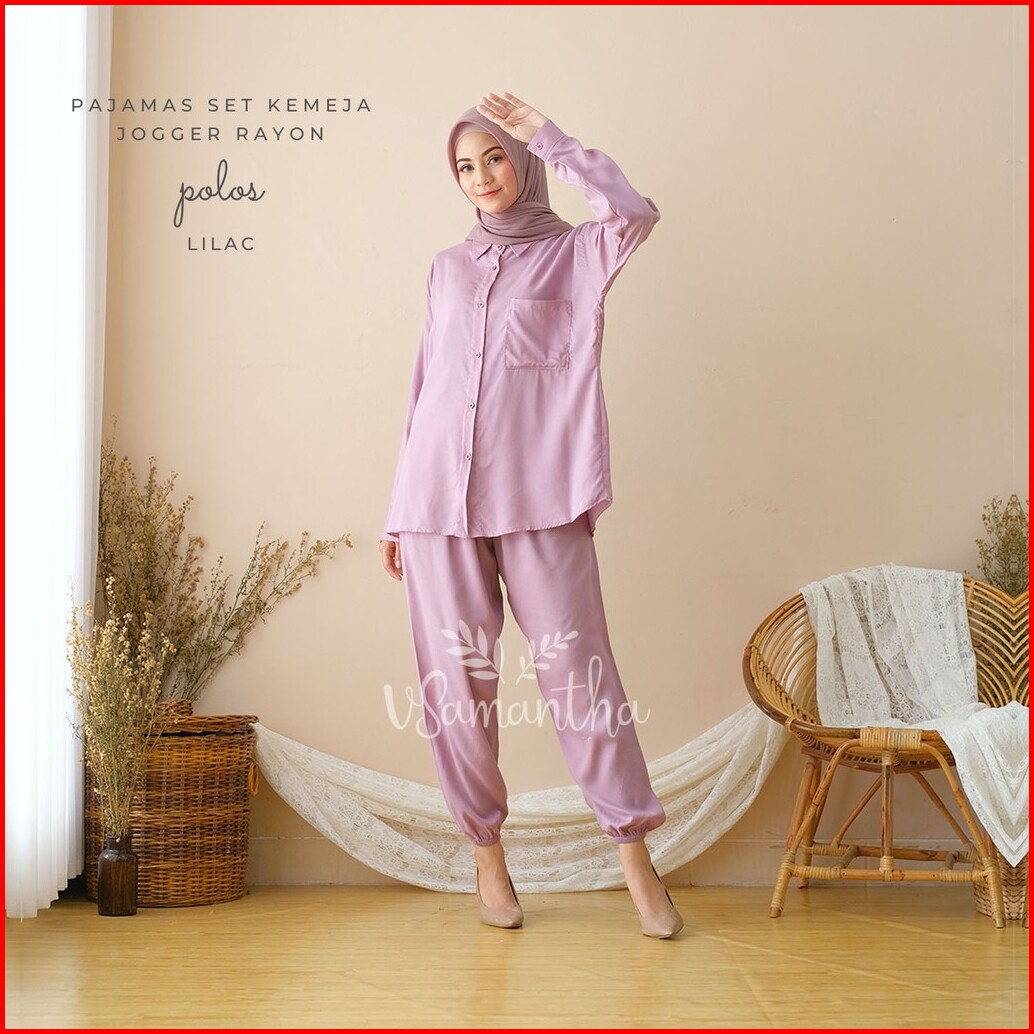 Vsamantha - Pajamas Kemeja Set Piyama Kemeja One Set Jogger Rayon Polos