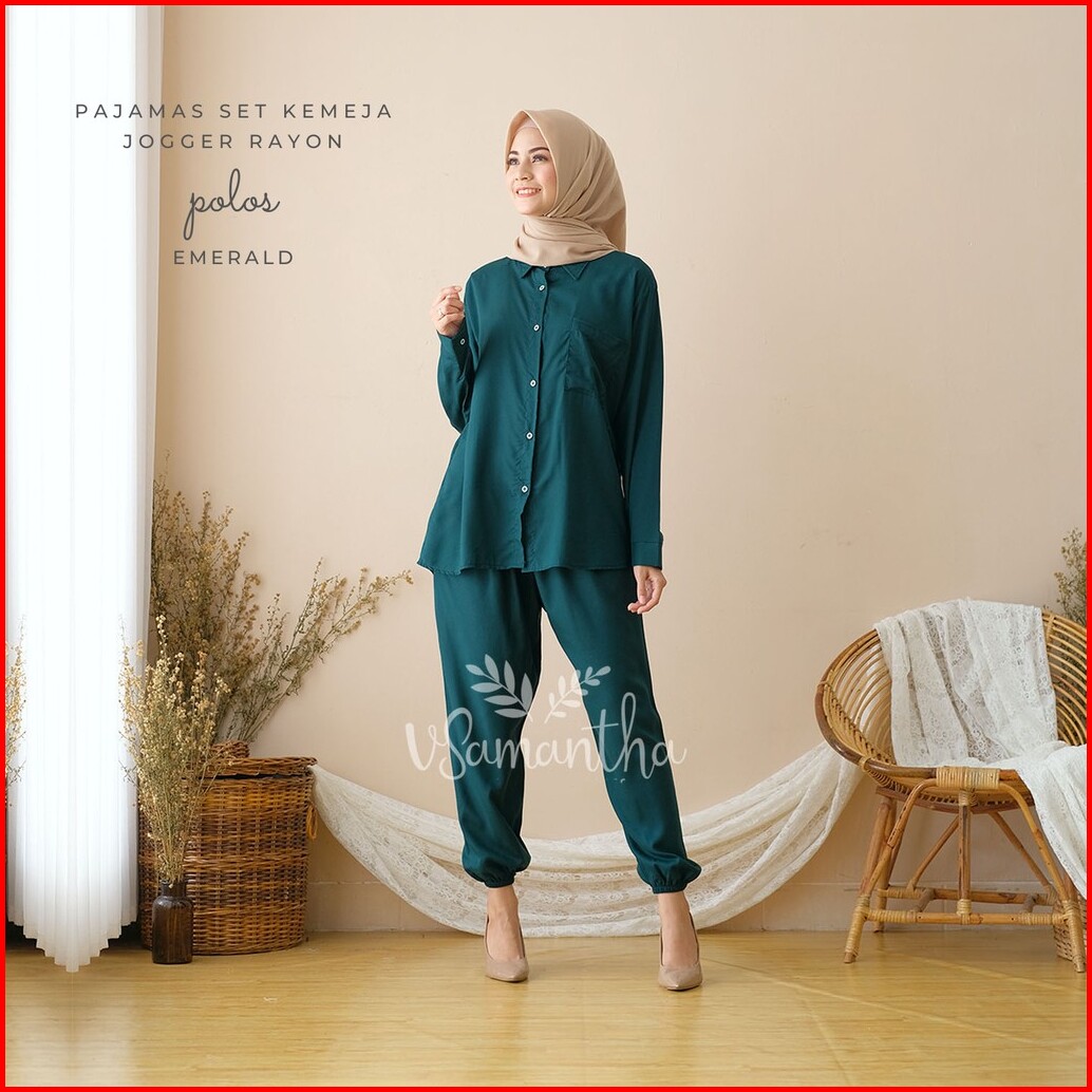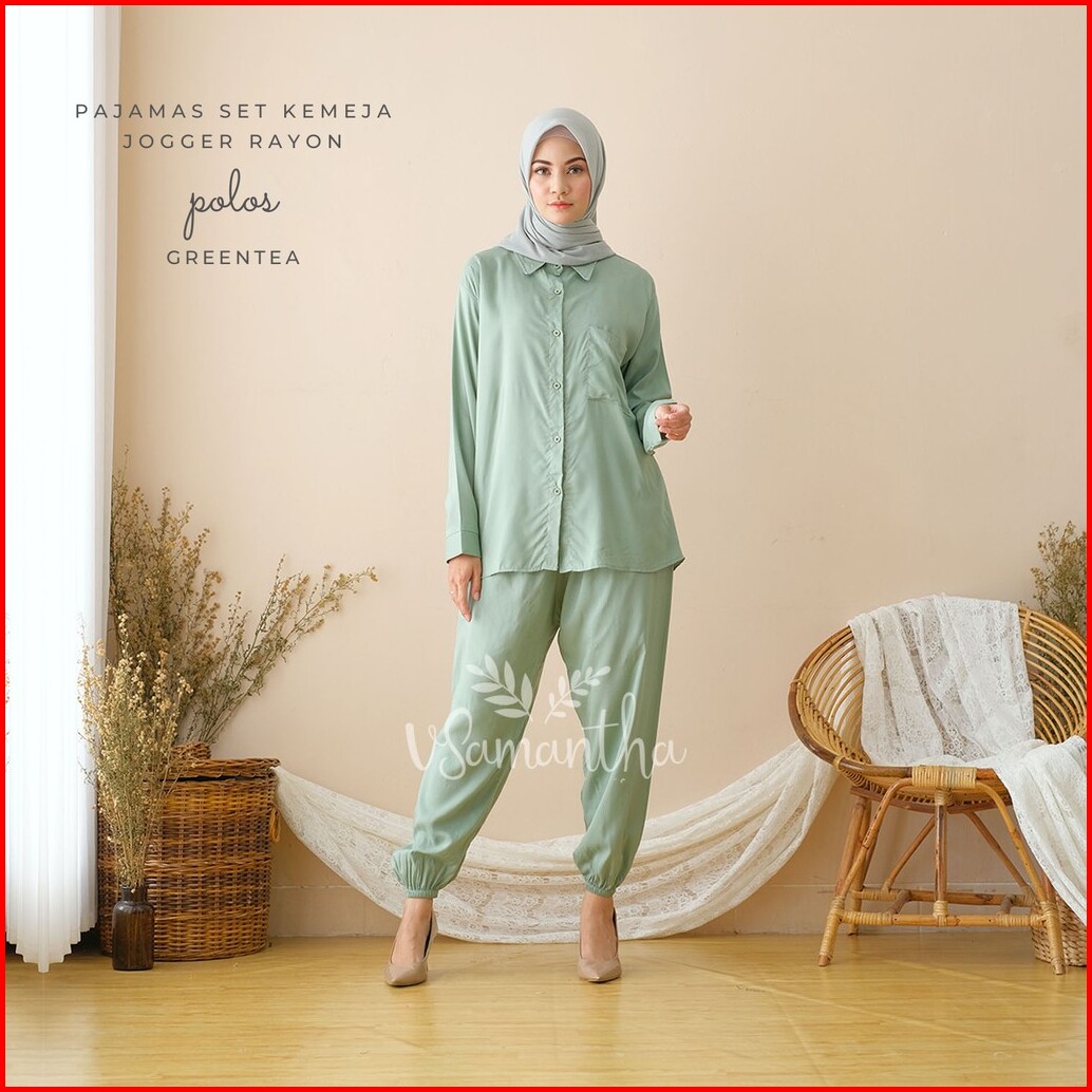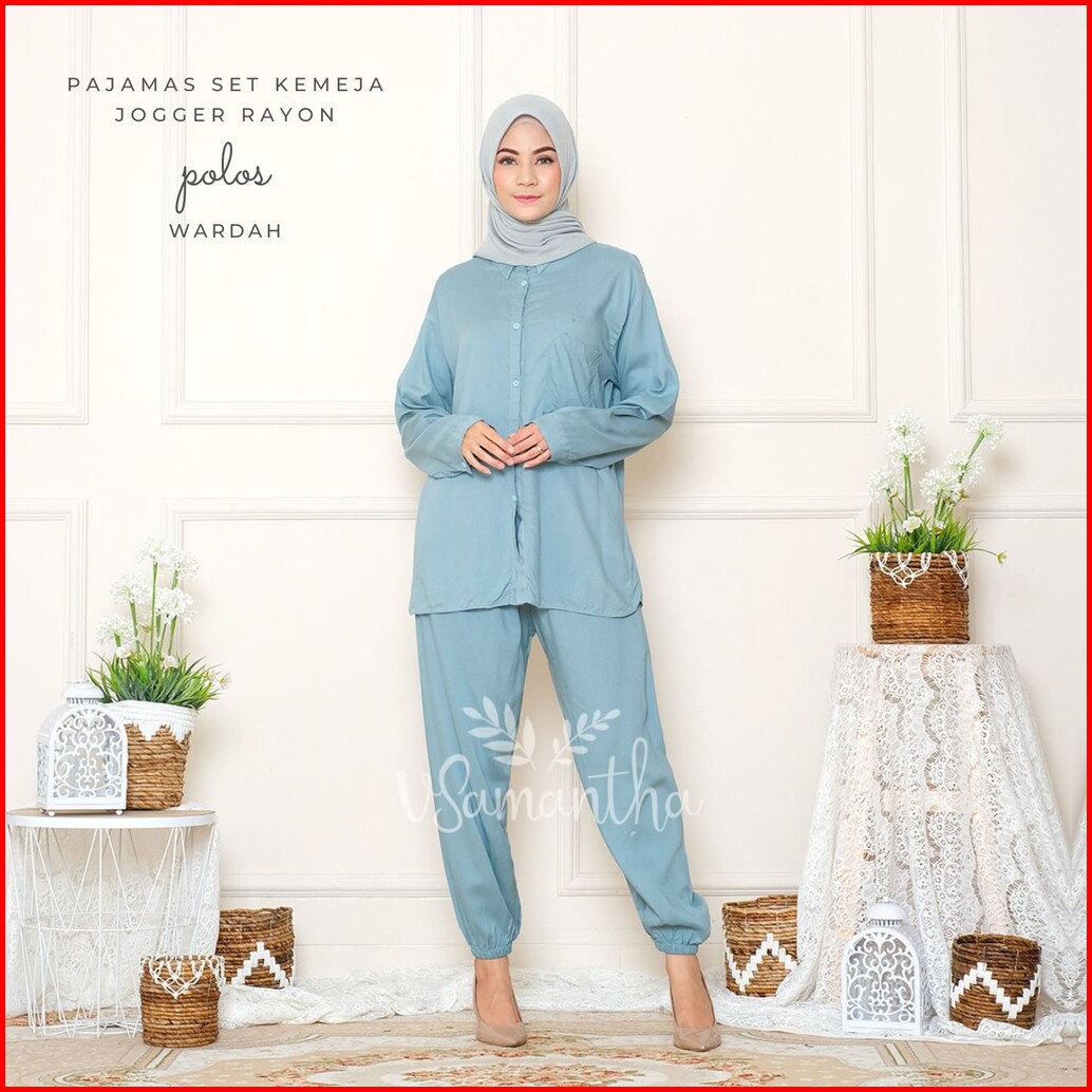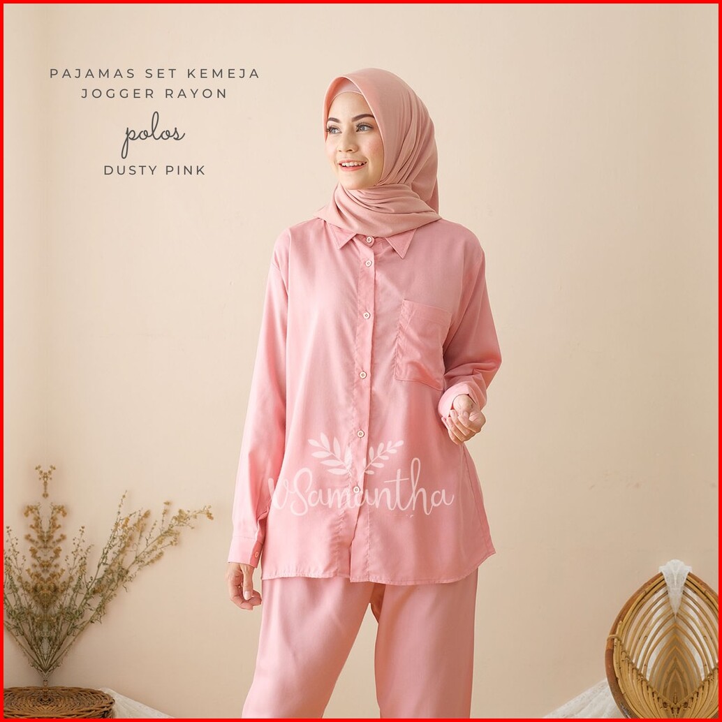 Vsamantha - Pajamas Kemeja Set Piyama Kemeja One Set Jogger Rayon Polos