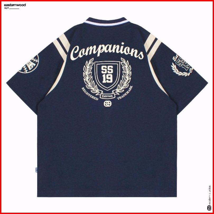 Easternwood Rugby Lengan Pendek Oversize Vintage Polo Shirt Navy