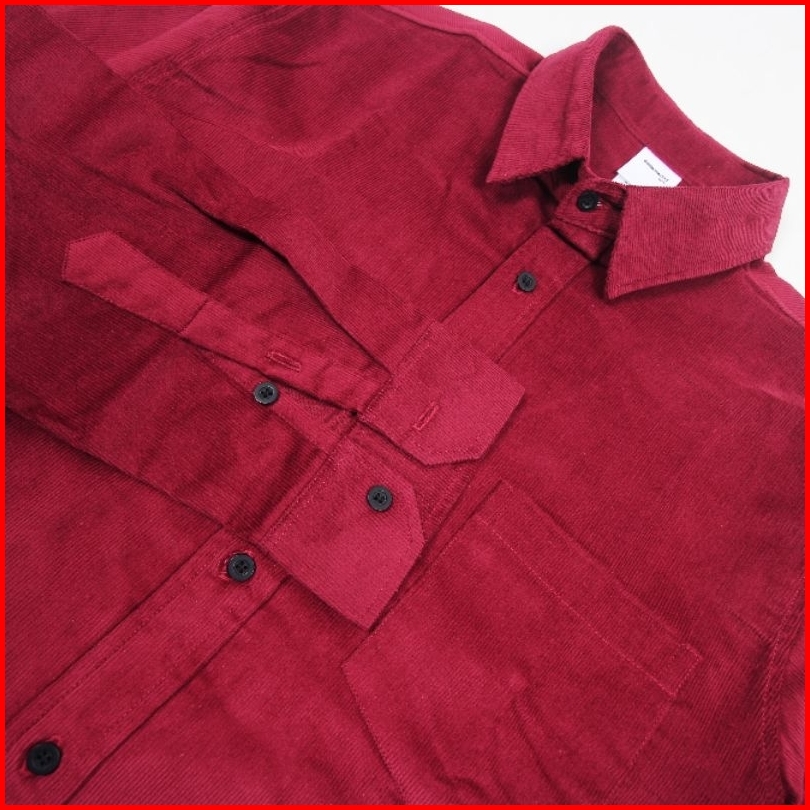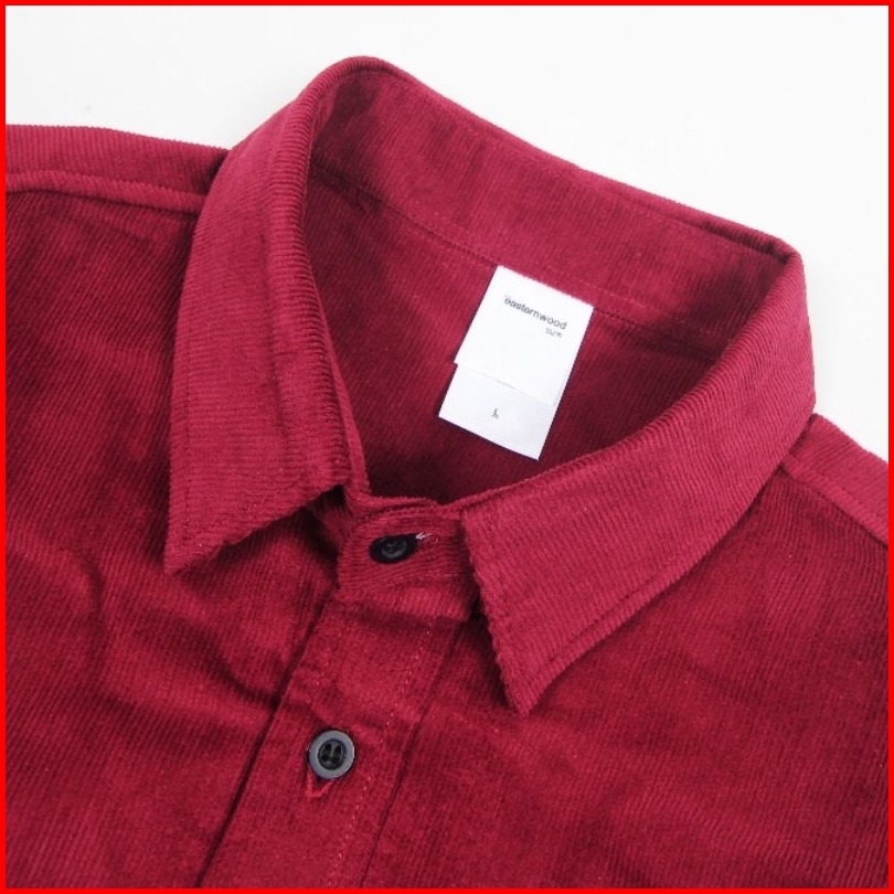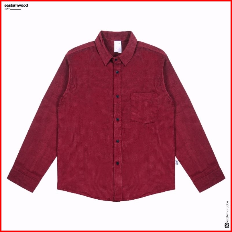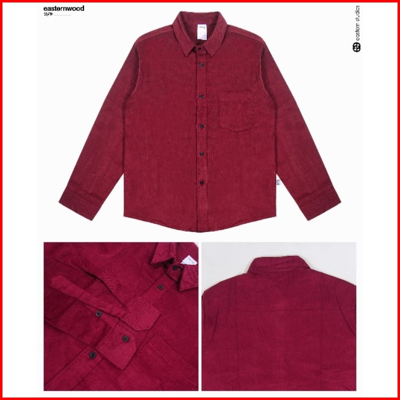 Easternwood Kemeja Pria Lengan Panjang Polos Kemeja Pria Corduroy Lengan Panjang Merah Maroon