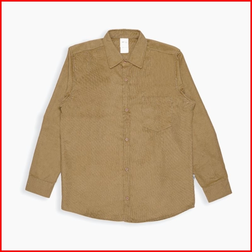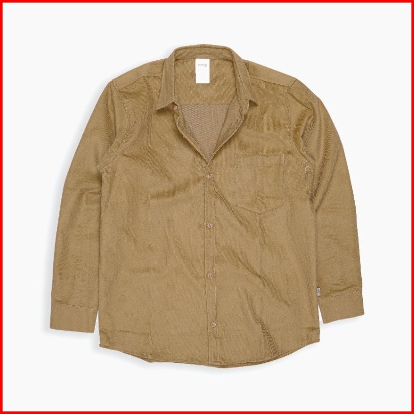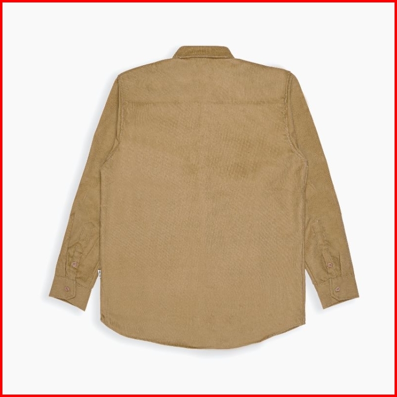 Easternwood Kemeja Pria Lengan Panjang Polos Kemeja Pria Corduroy Crem Muda
