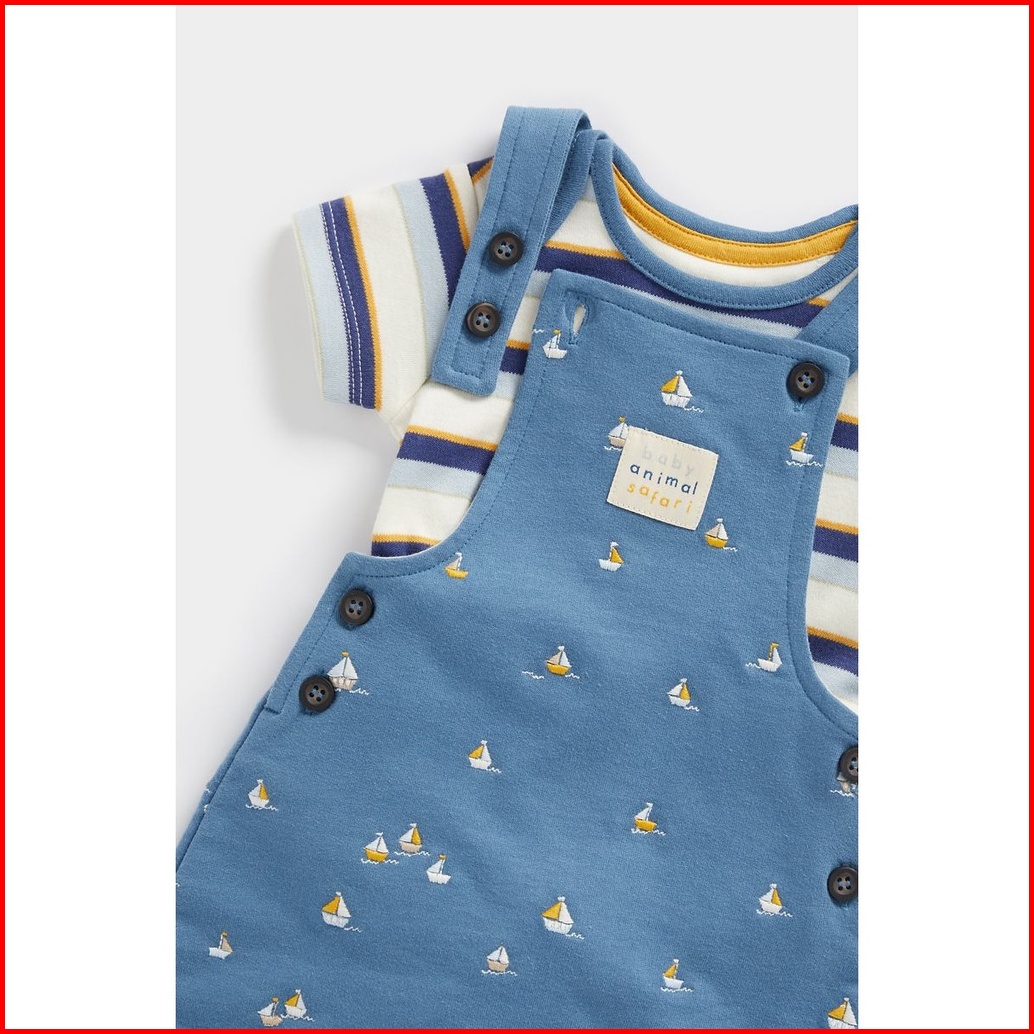 Mothercare Safari Fun Bibshorts And Bodysuit Set - Set Pakaian Bayi Laki-laki Biru
