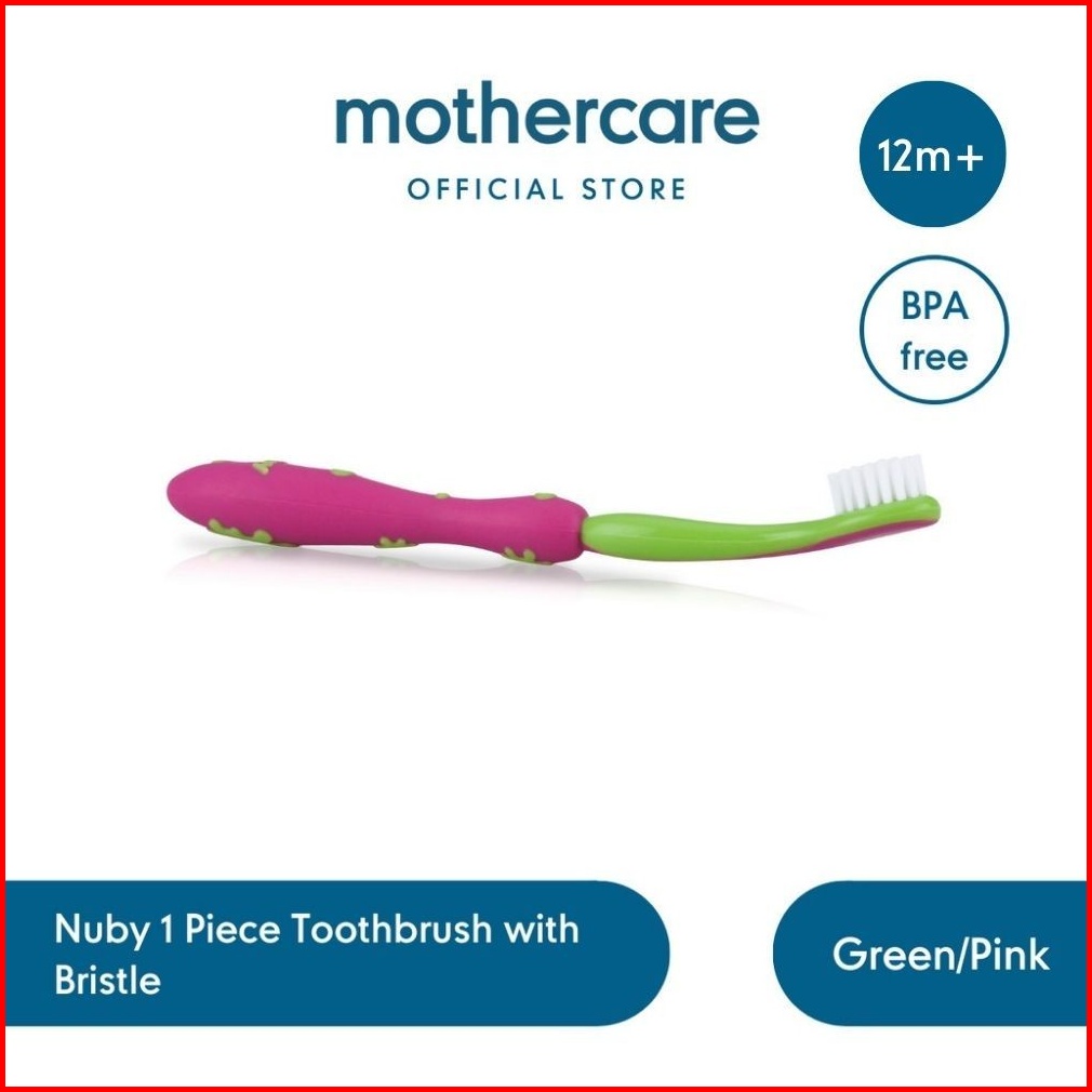 Nuby 1pk Toothbrush With Bristle Green Pink - Sikat Gigi Hijau Pink