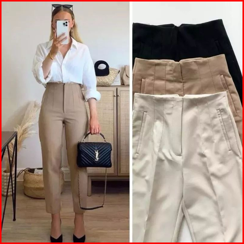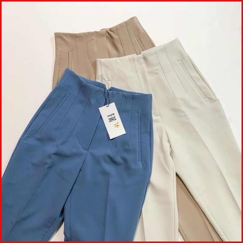 Celana Scuba Pensil Basic Slim Pants Saku Paspol Celana Panjang Wanita Highwaist Baggy Pant Korean Style