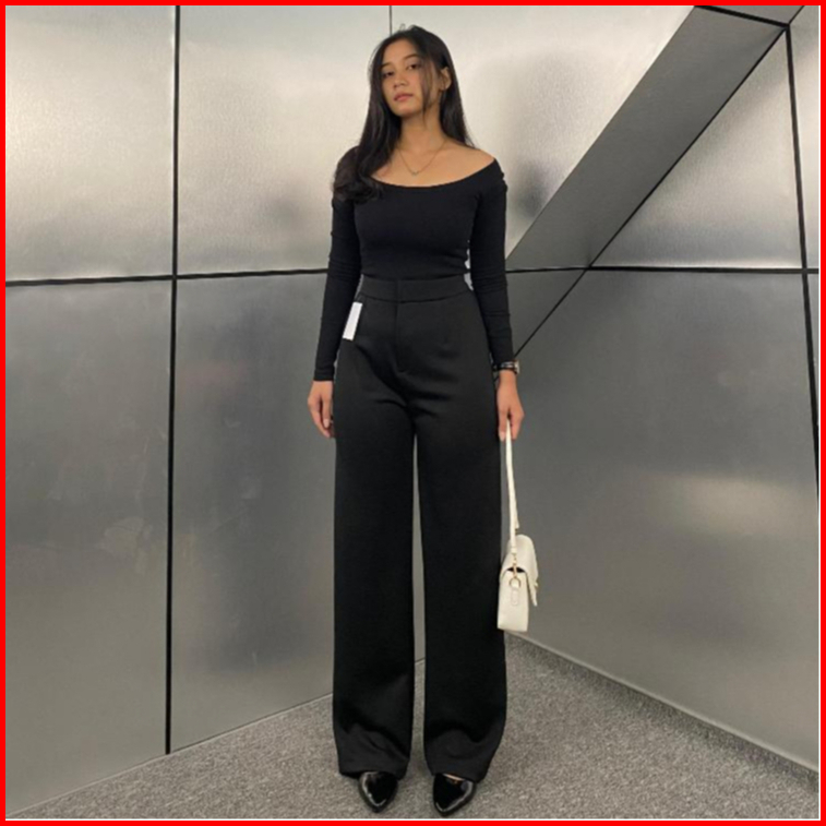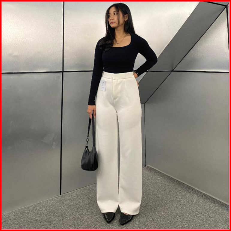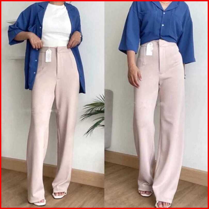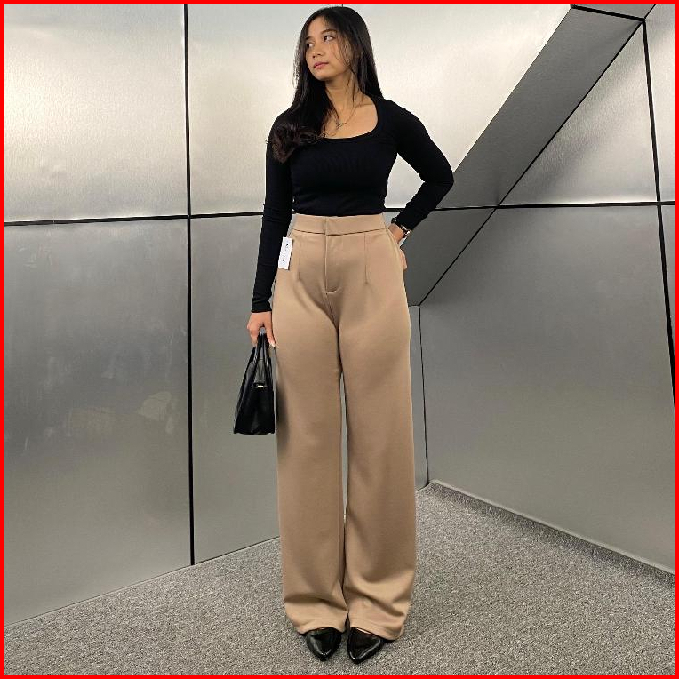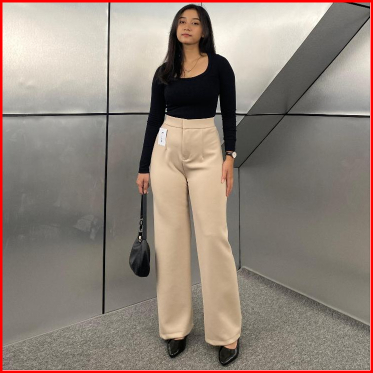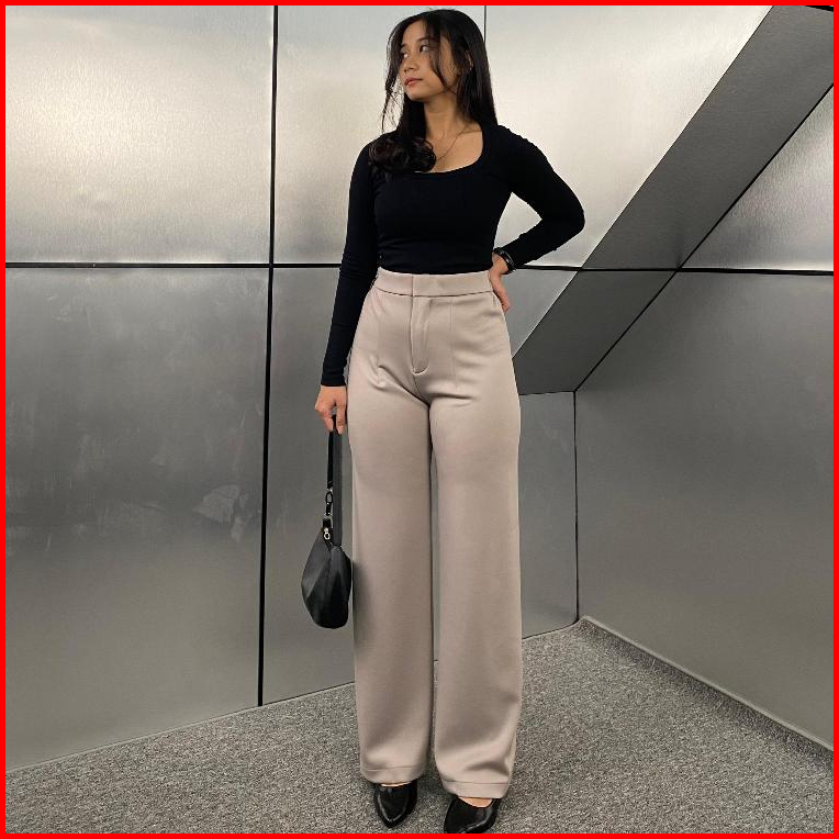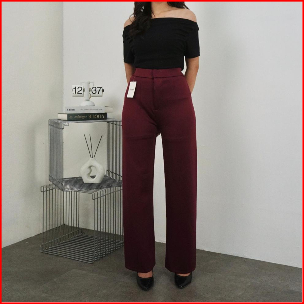 Loose Pants Scuba 399 Celana Anti Kusut Celana Kulot Wanita Polyester Highwaist By Edbas.store01