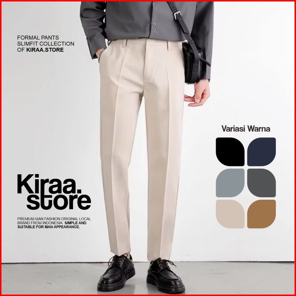 Kiraastore - Celana Kantor Formal Kerja Slimfit Bahan Dasar Kain Size 27-38 - Angkle Pants Pria