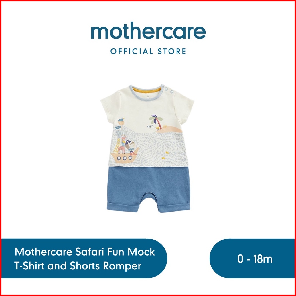 Mothercare Safari Fun Mock T-shirt And Shorts Romper - Terusan Bayi Laki-laki Multicolor
