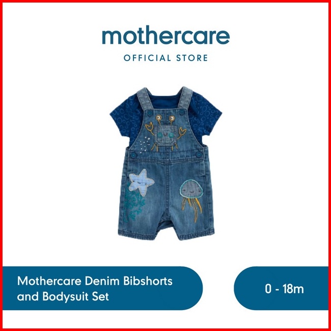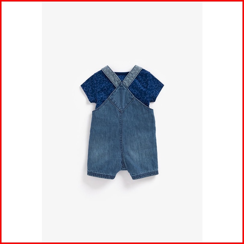 Mothercare Denim Bibshorts And Bodysuit Set - Set Pakaian Bayi Laki-laki Biru