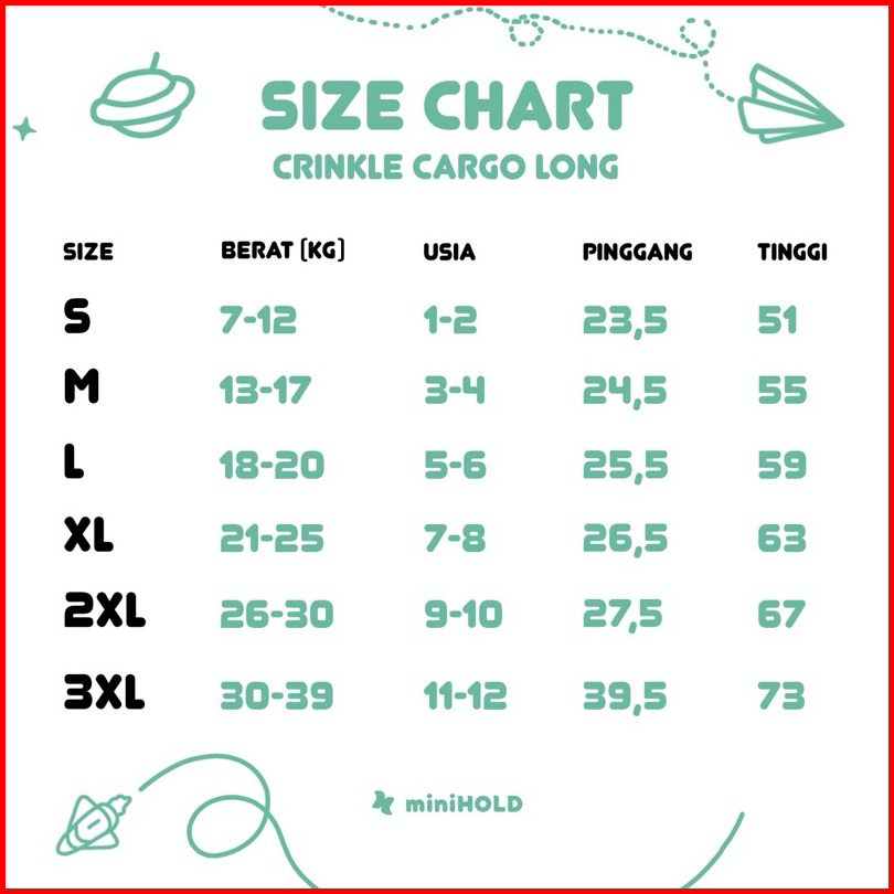 Minihold Cargo Long Pants Celana Panjang Kargo Anak Parasut Crincle Usia 1-12 Tahun