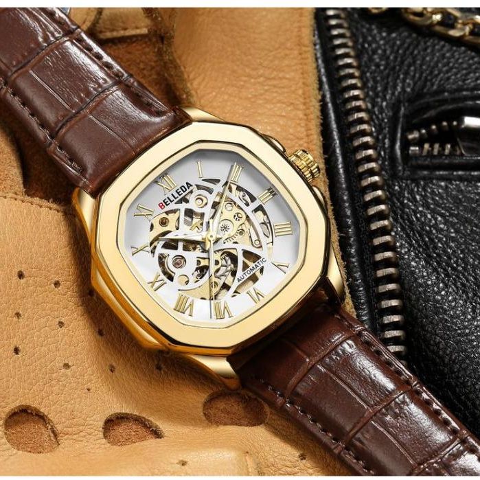 TERLARIS JAM TANGAN PRIA BELLEDA 9484 AUTOMATIC UNISEK PRIA WANITA TALI KULIT ANTI AIR 3ATM ORIGINAL WATCH