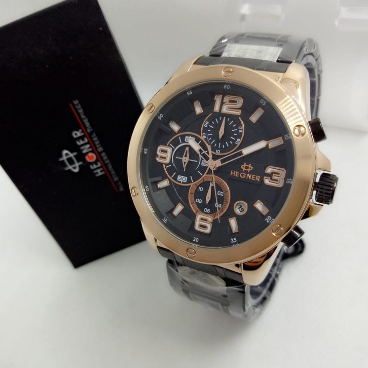 TERLARIS HEGNER 6603 - JAM TANGAN FORMAL PRIA - ANTI AIR - ANALOG QUARTZ - CHRONO AKTIF - ORIGINAL