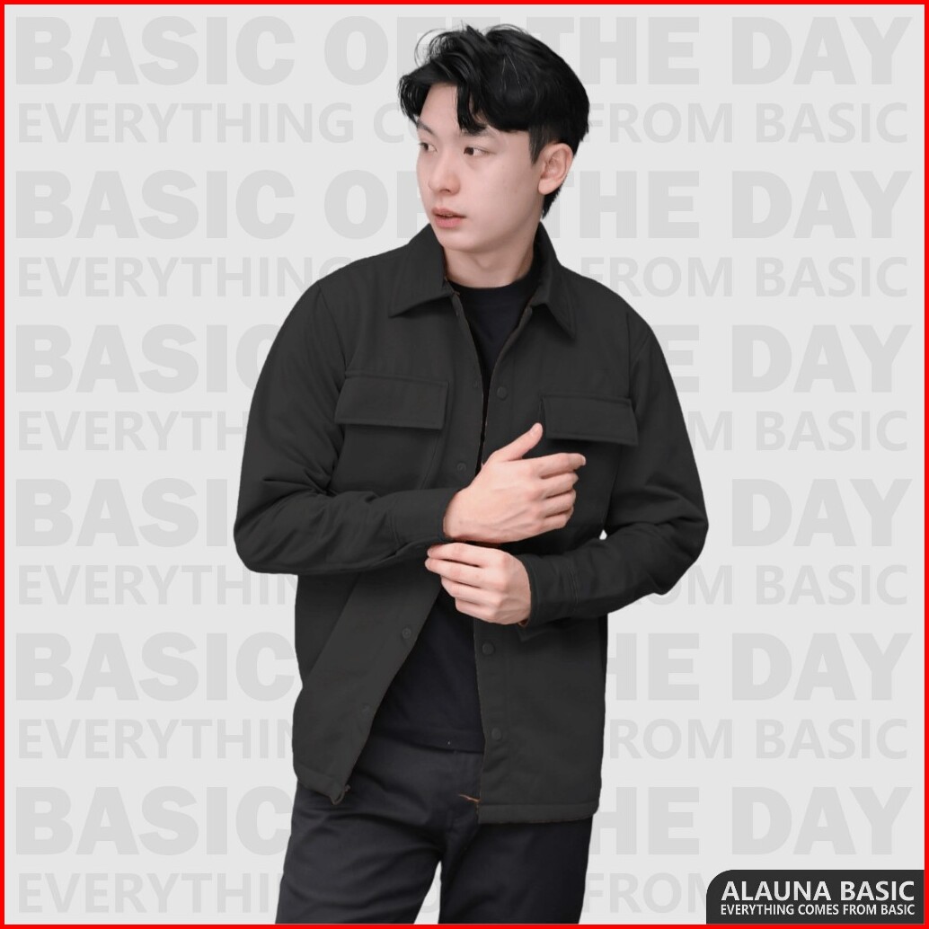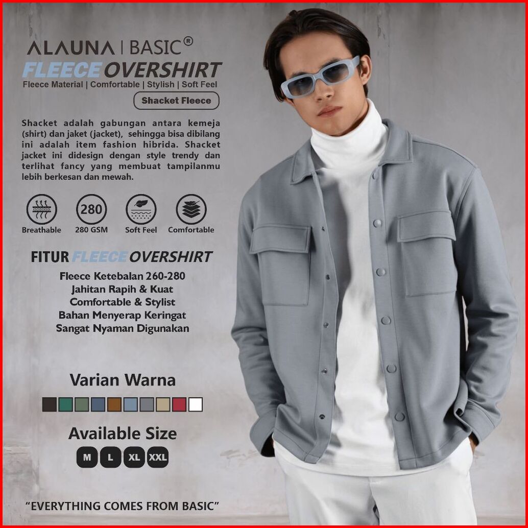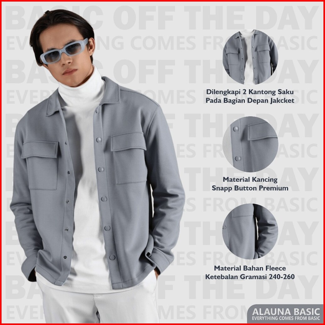 Alauna Basic - Shacket Jacket - Jaket Pria Overshirt Fleece Original Premium Grey