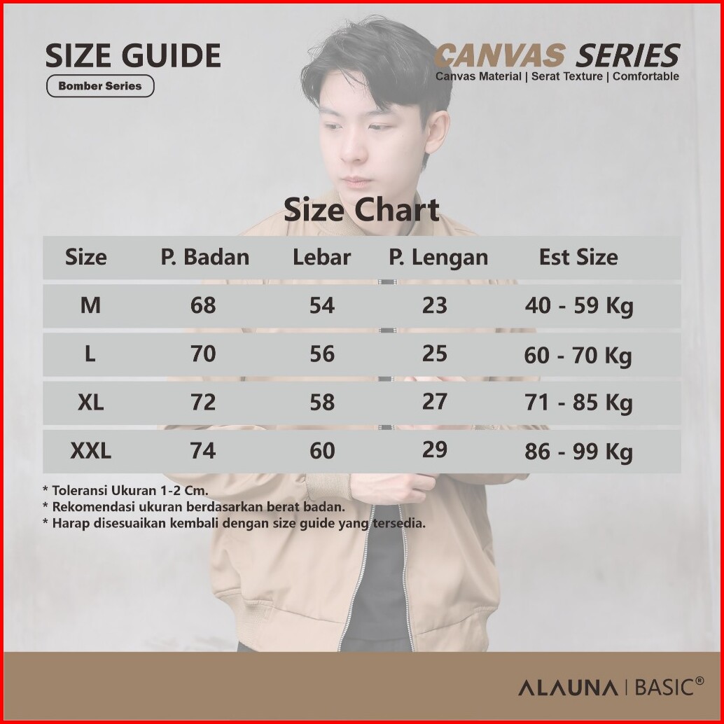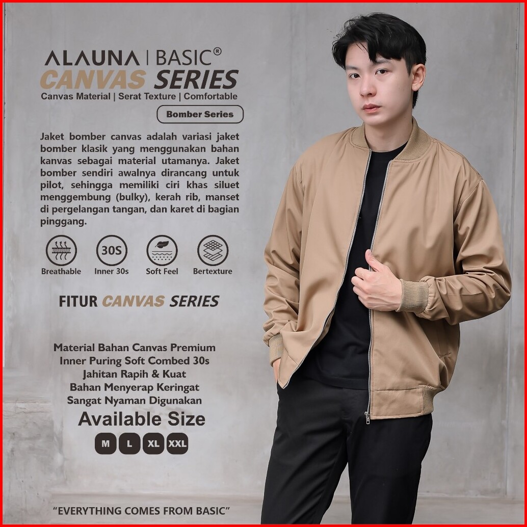 Alauna Basic - Jaket Pria Bomber Canvas Series Premium Cream