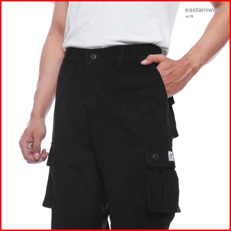 Easternwood Celana Cargo Panjang Corduroy Hitam Long Cargo Pants Black