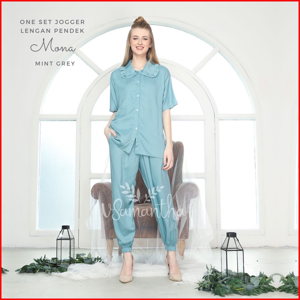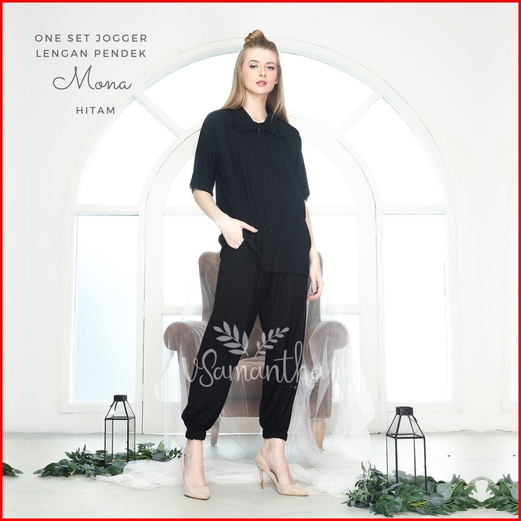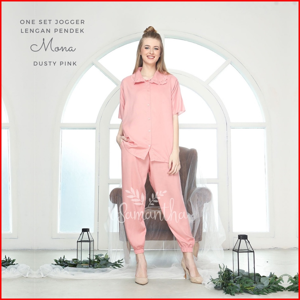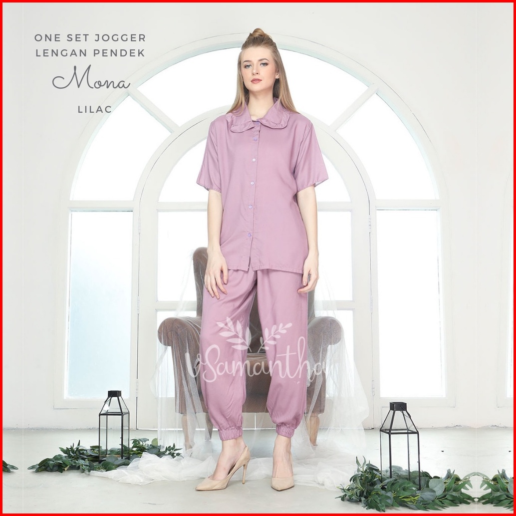 Vsamantha - Piyama One Set Rayon Polos Jogger Mona Lengan Pendek