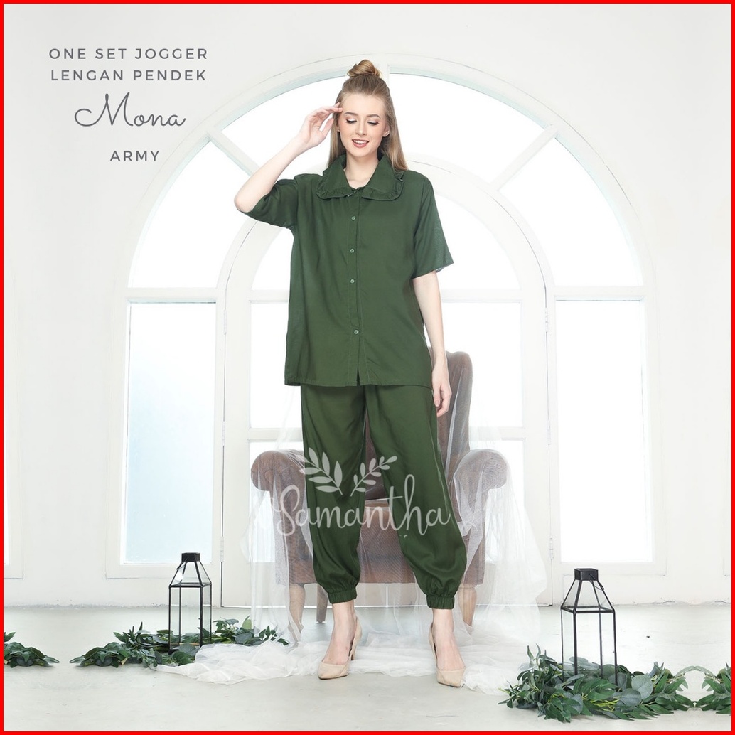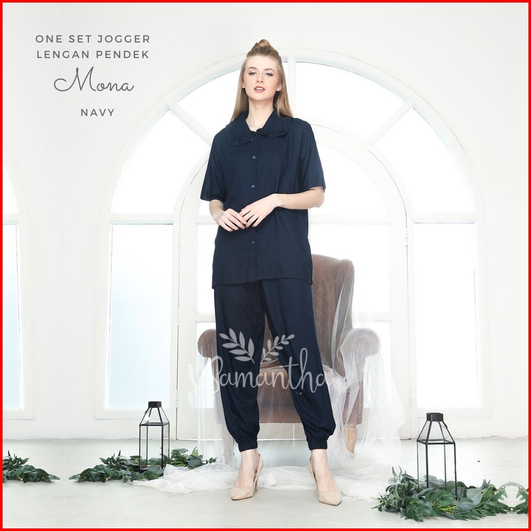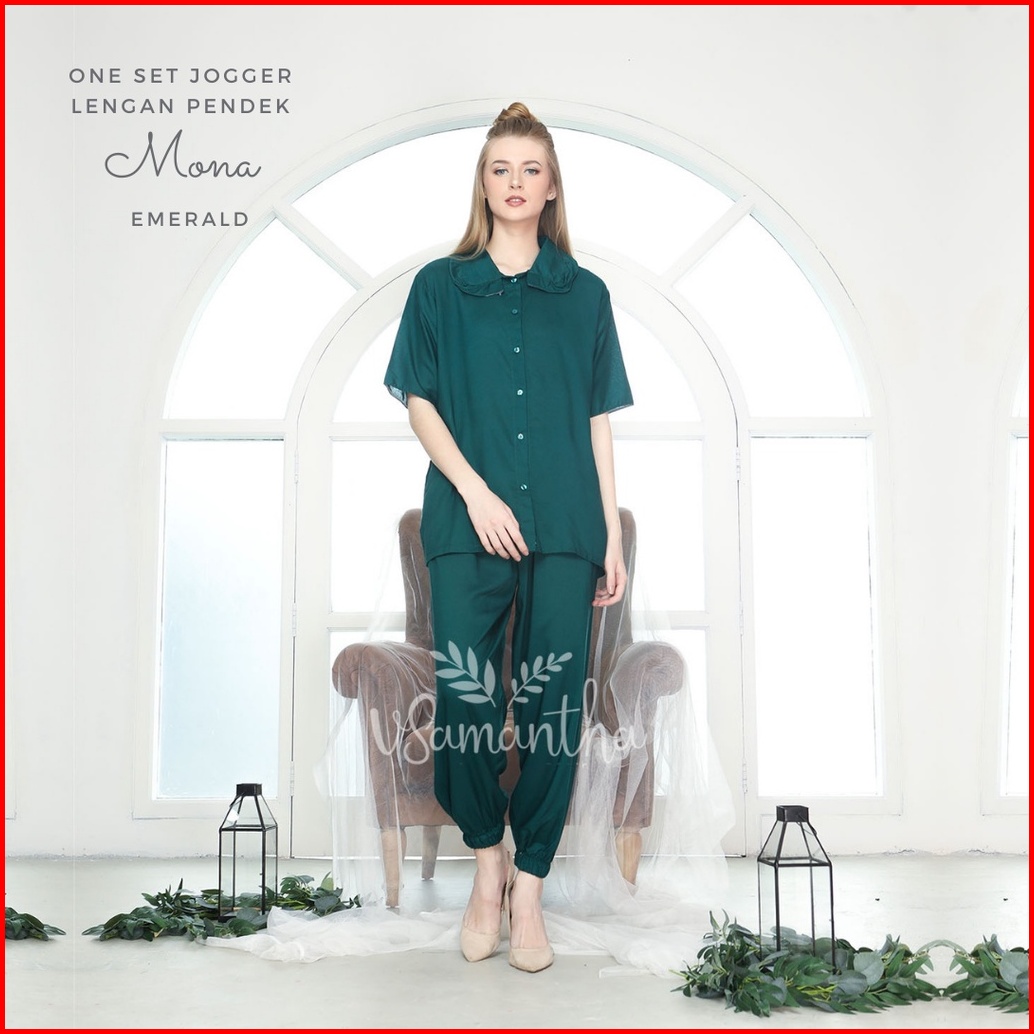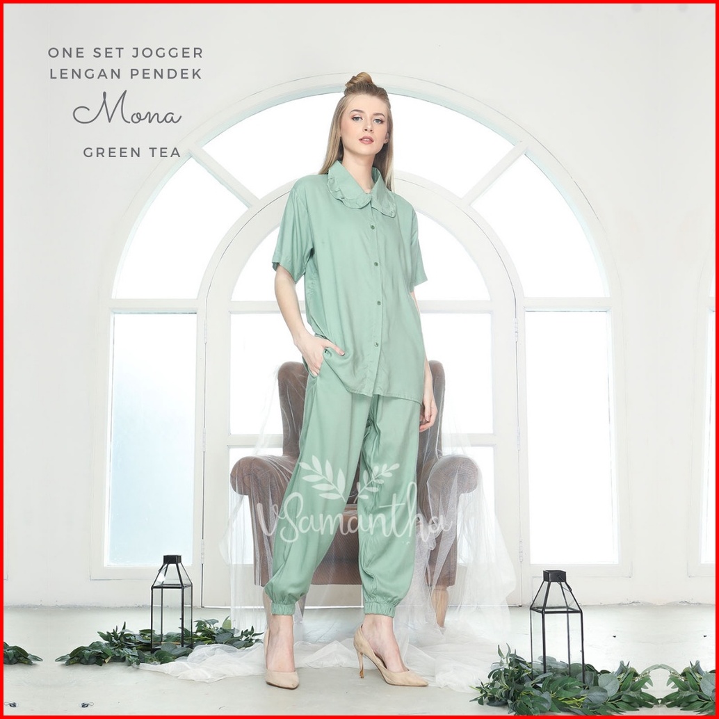 Vsamantha - Piyama One Set Rayon Polos Jogger Mona Lengan Pendek