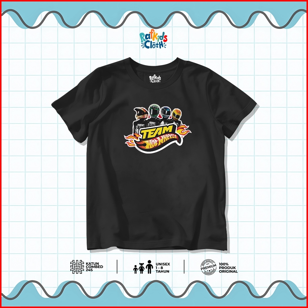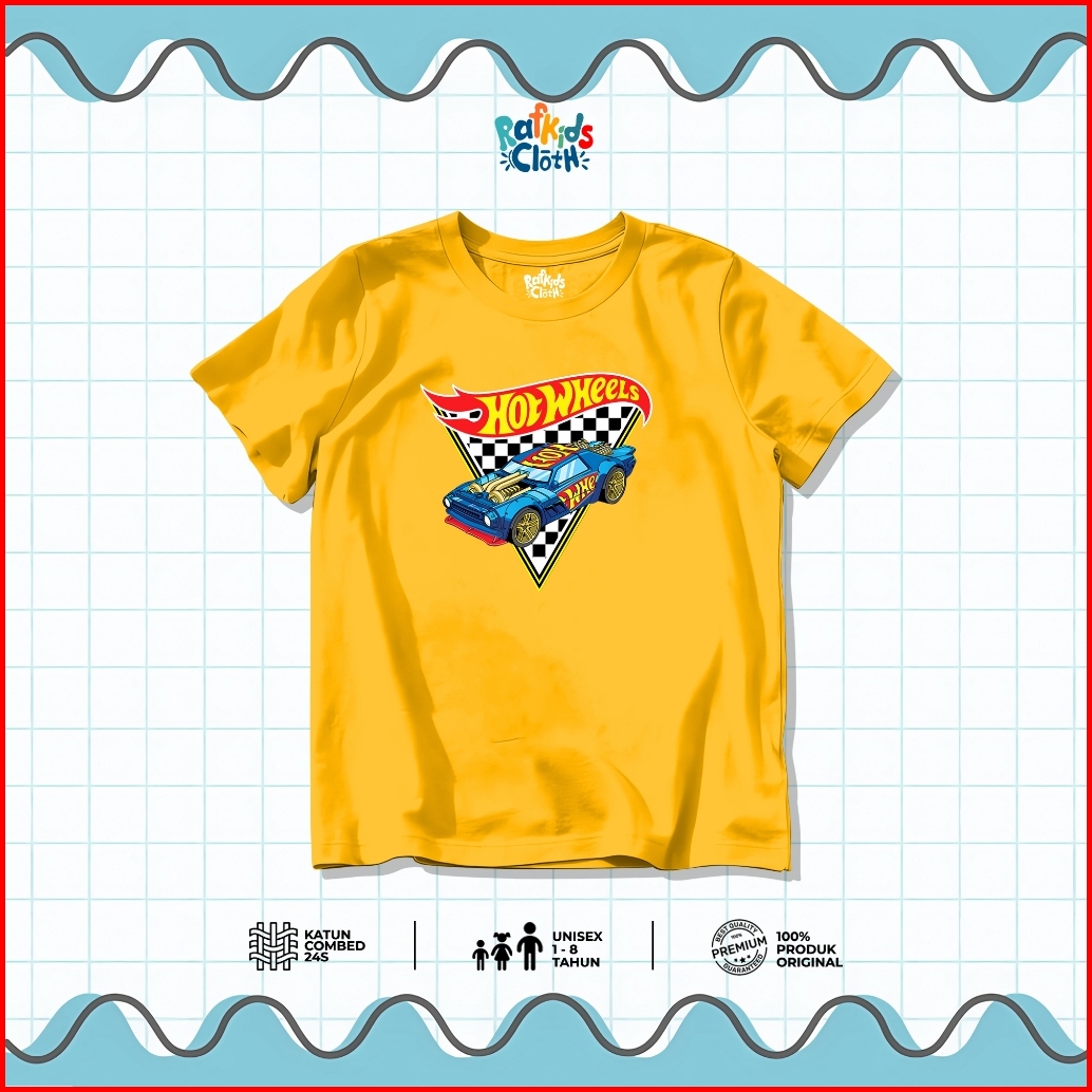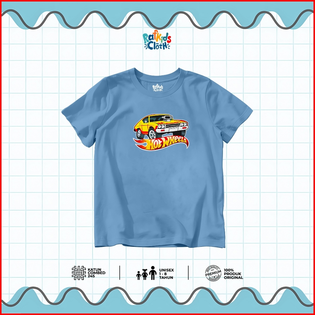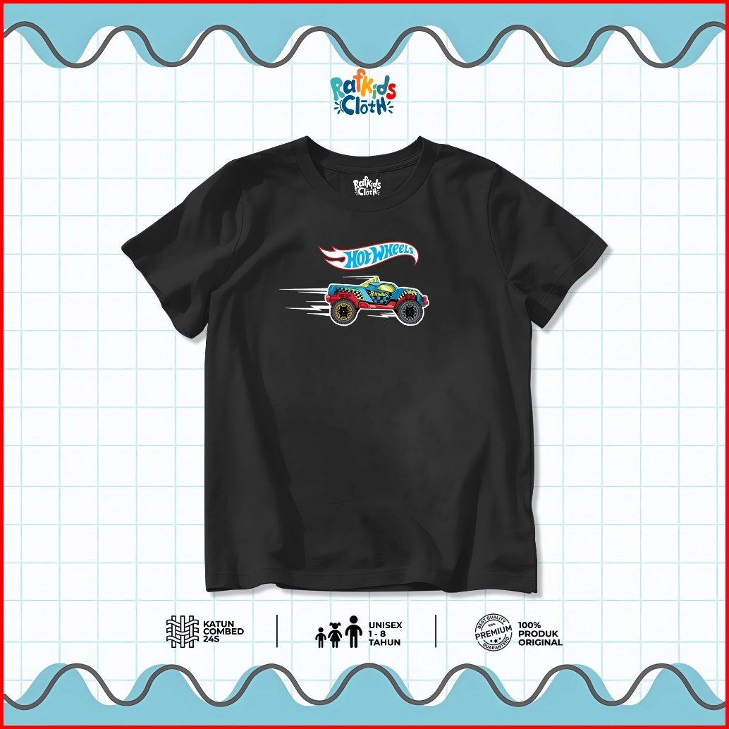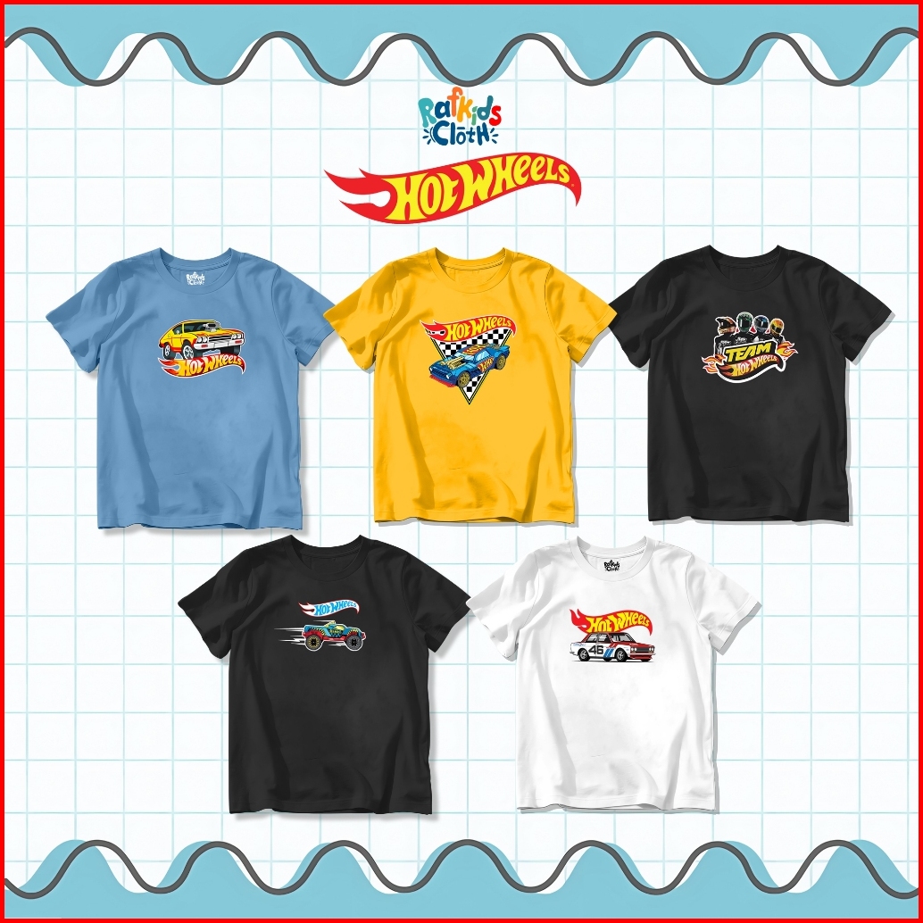 Kaos Anak Usia 1-8 Tahun Baju Laki Laki Lengan Pendek Motif Mobil Hot Wheels Hotwil Katun Combed 24s