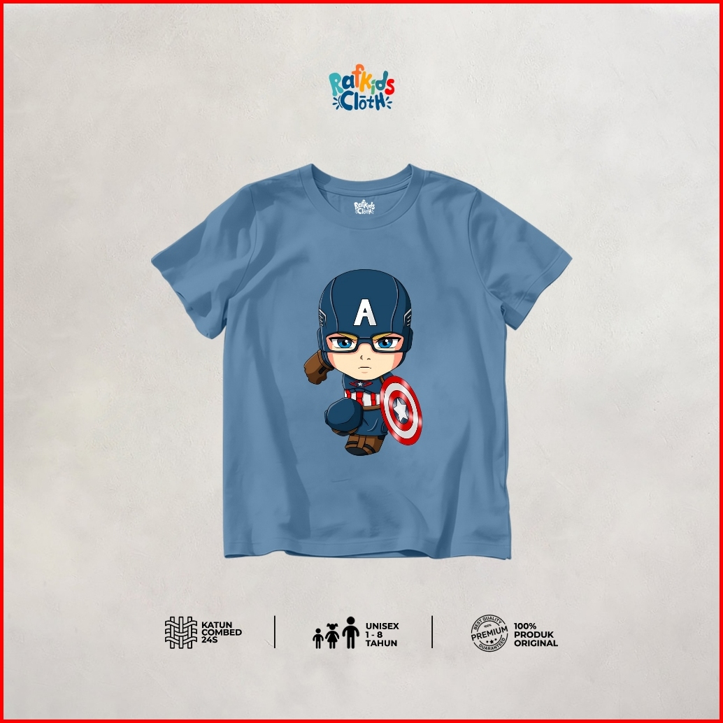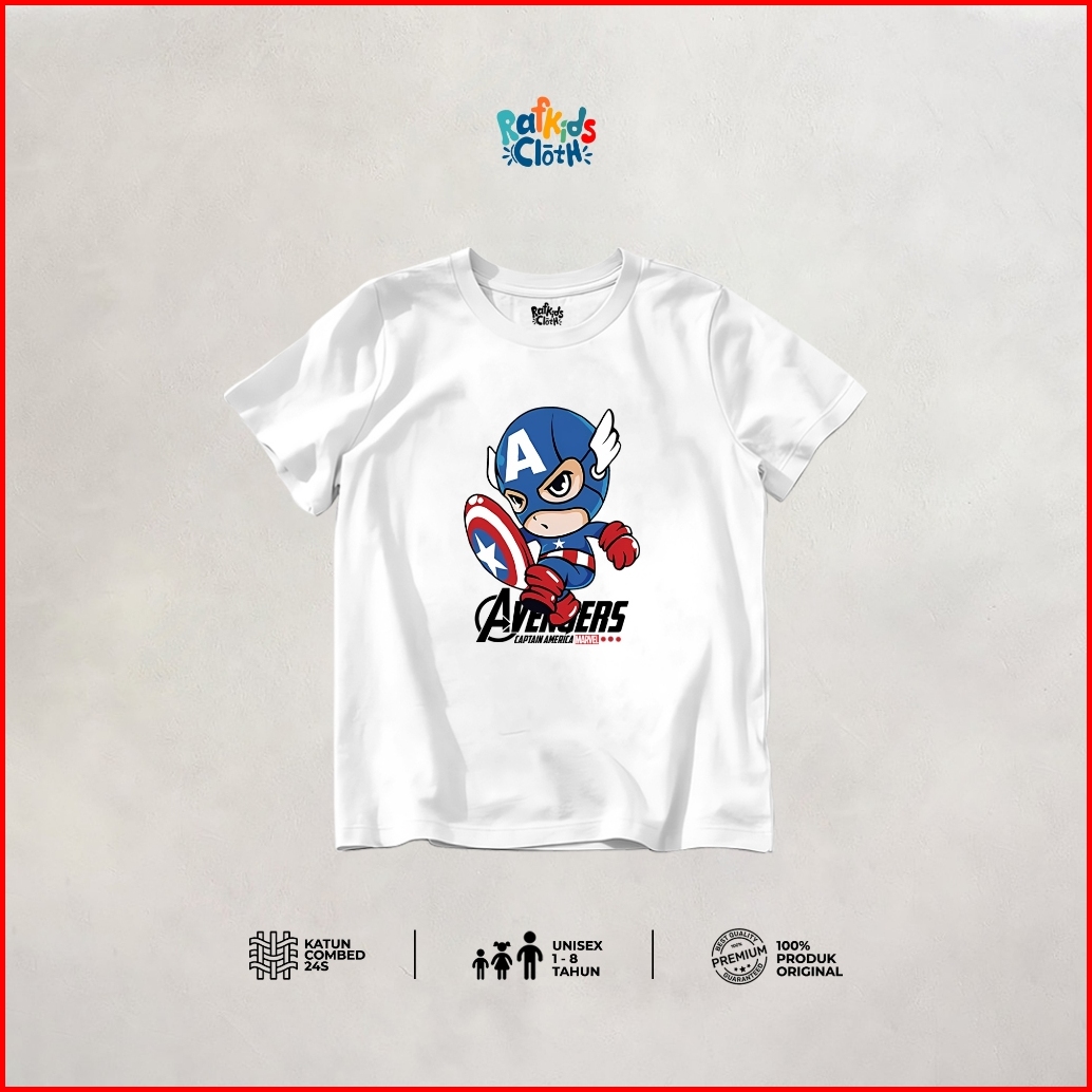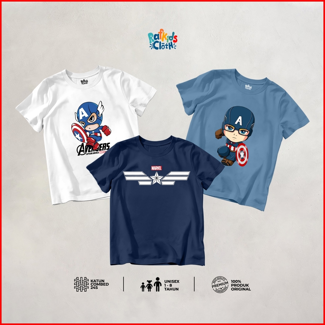 Kaos Anak Laki-laki Gambar Superhero Captain America Baju Atasan Umur 1-10 Tahun Cotton Combed 24s