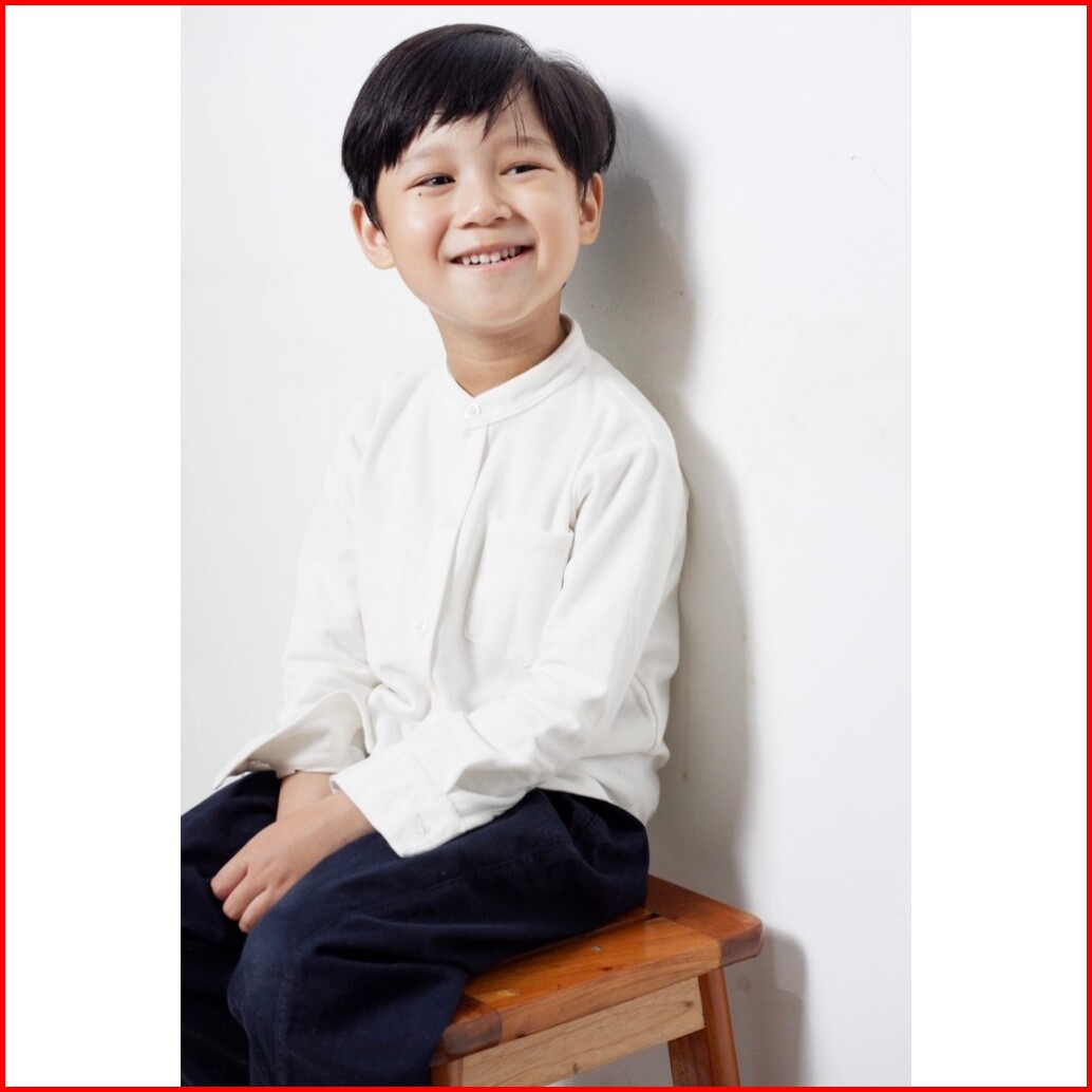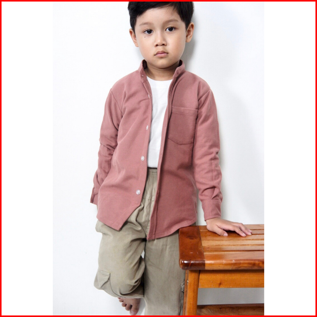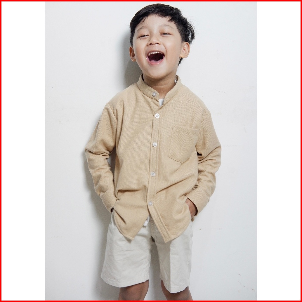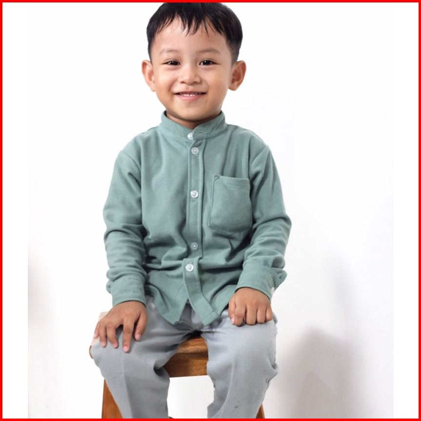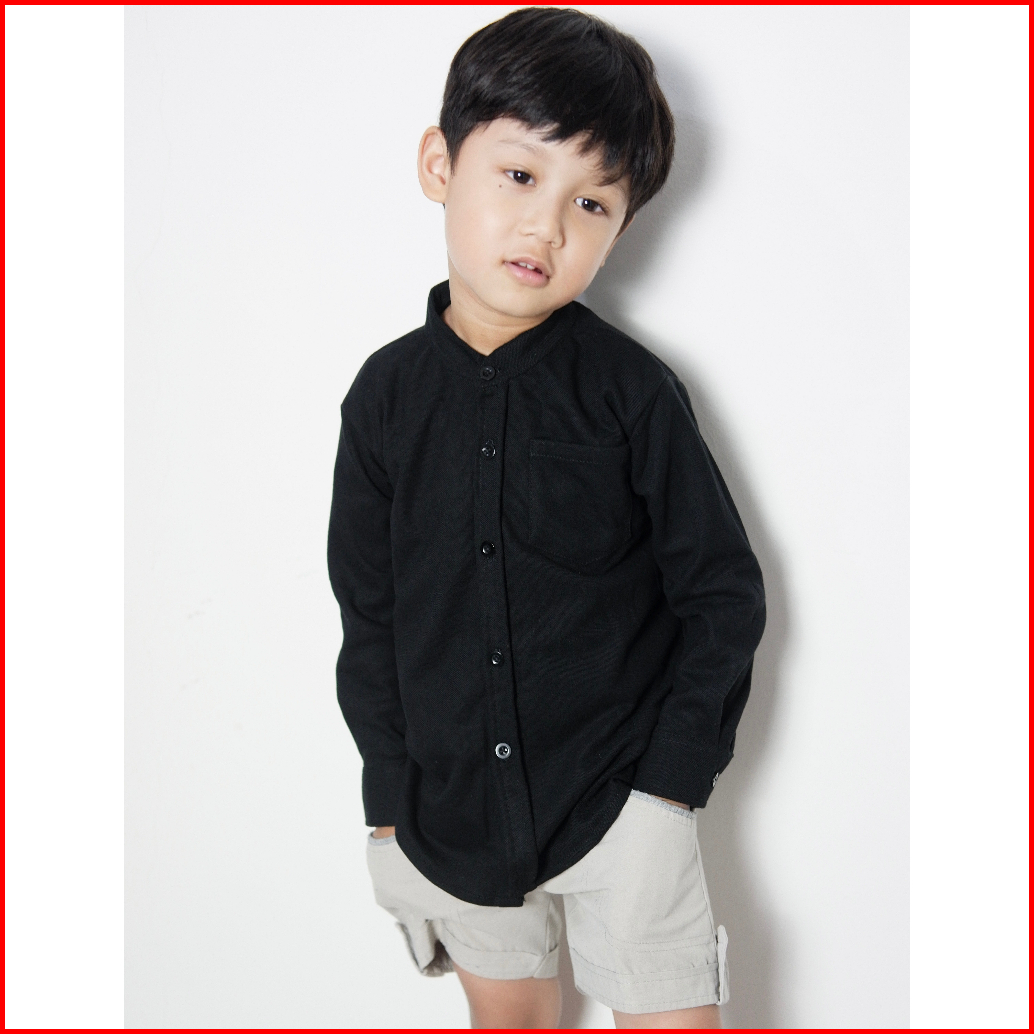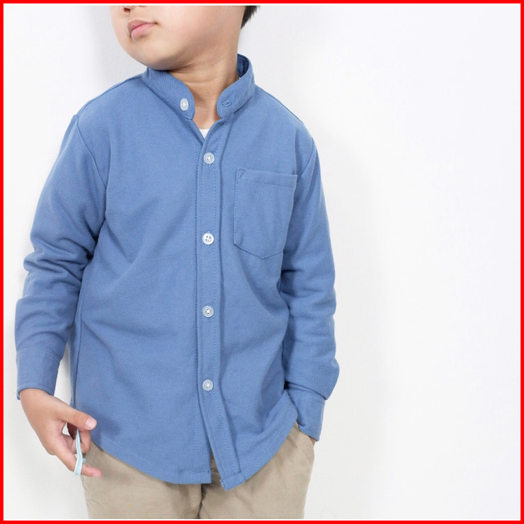 Kemeja Anak Cowok Usia 1-12 Tahun Polos Kerah Chiangi Lengan Panjang