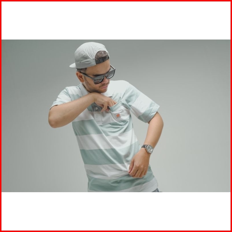 Easternwood Rugby Shirt Lengan Pendek Salur Pocket