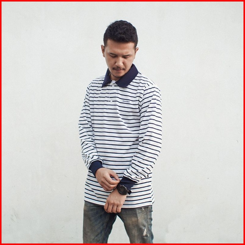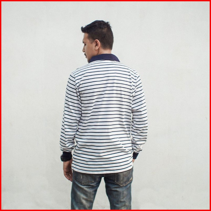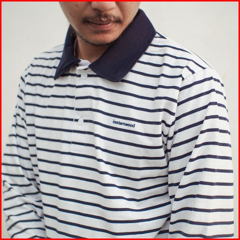 Easternwood Rugby Shirt Long Sleeve Polo Shirt Polo Lengan Panjang Stripe Navy