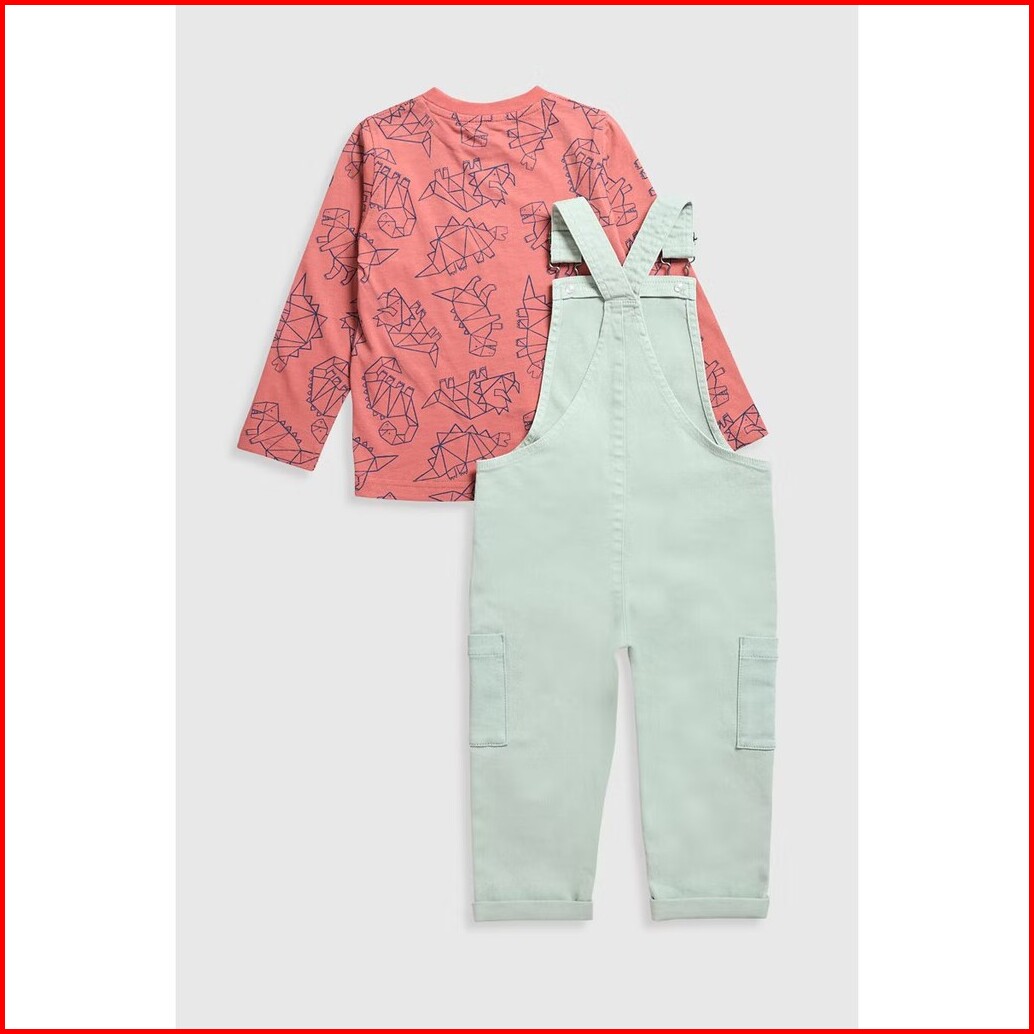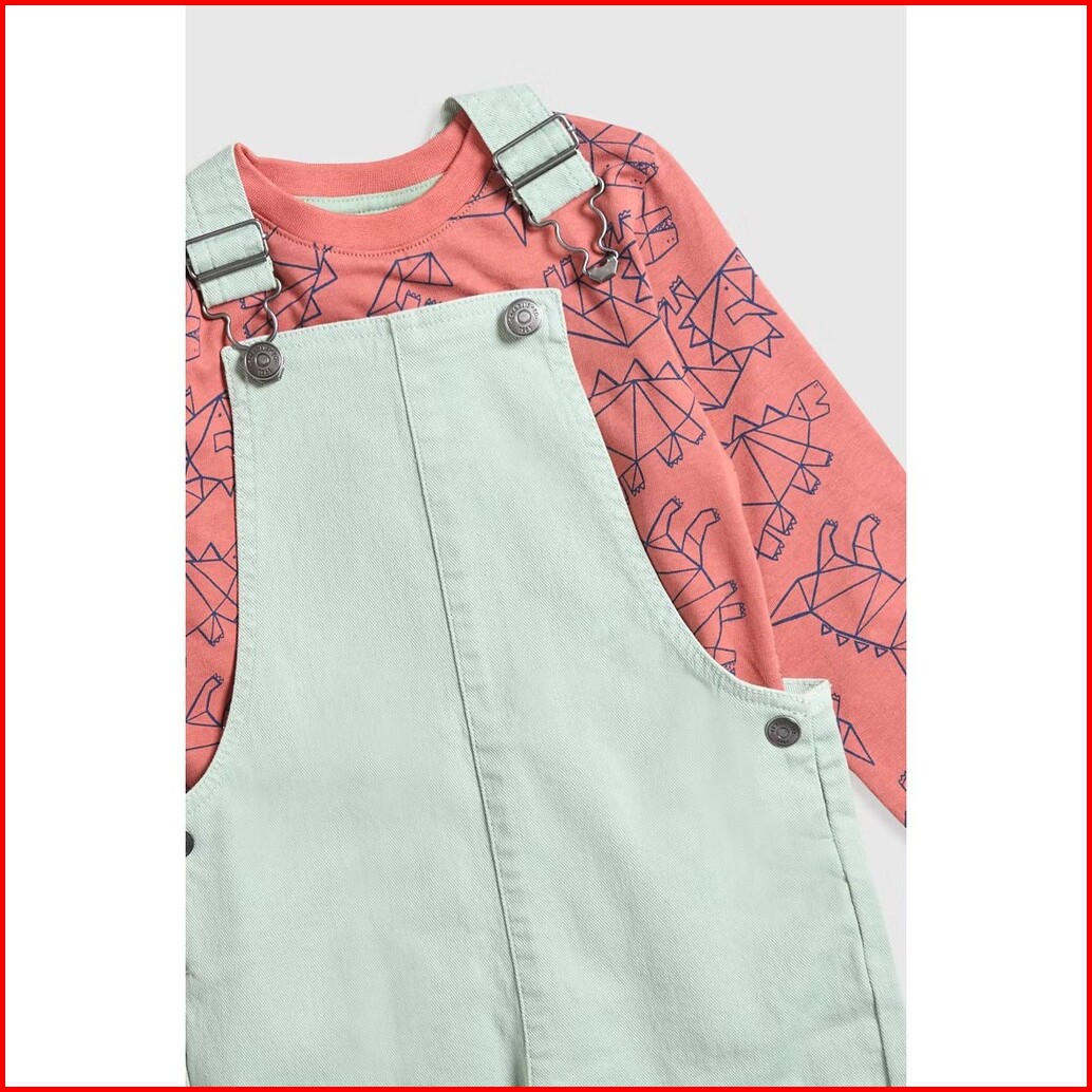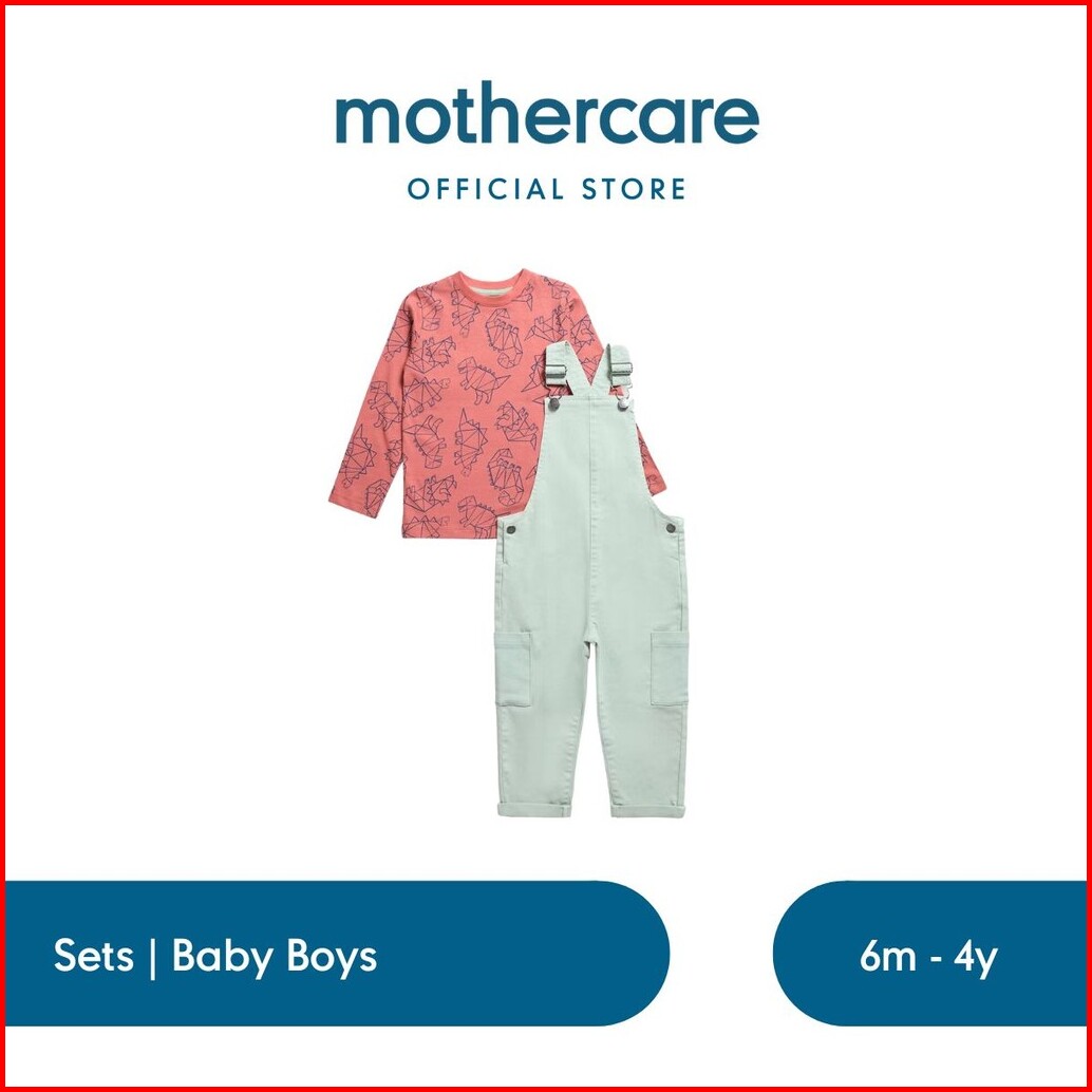 Mothercare Dungarees And Dinosaur T-shirt Set - Set Baju Bayi Laki-laki Hijau