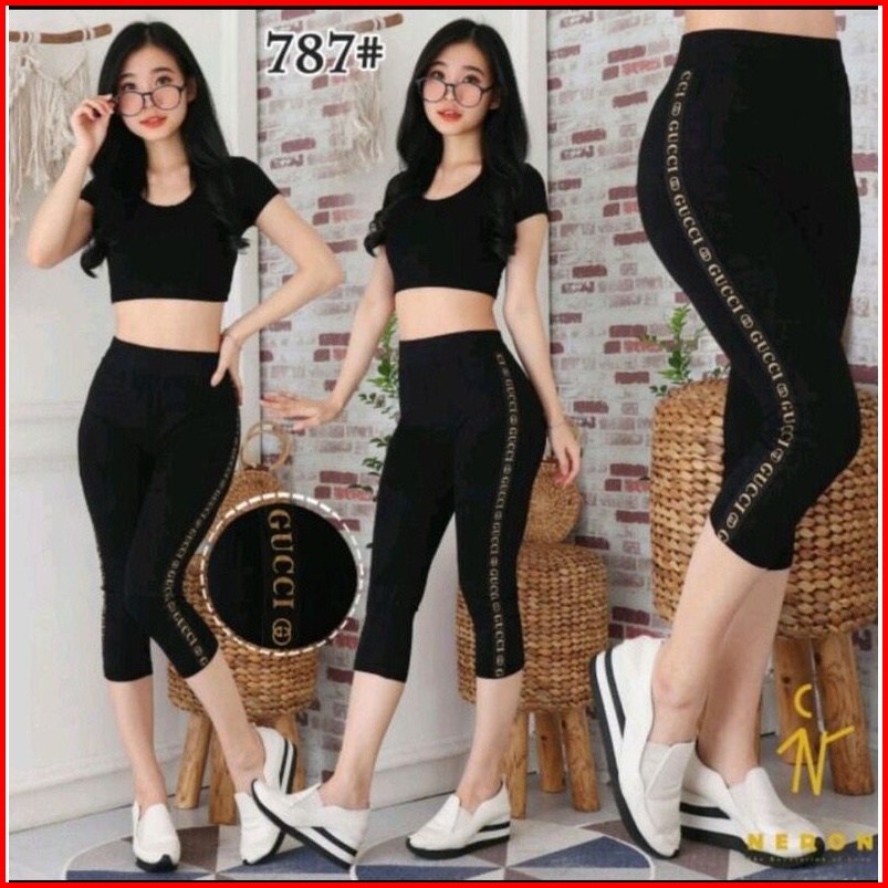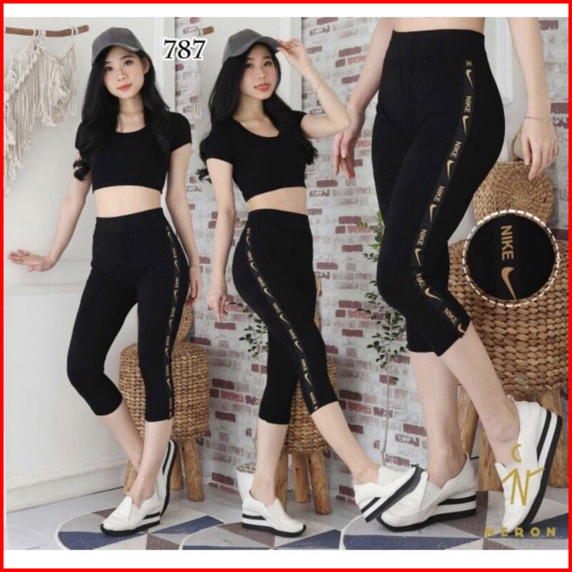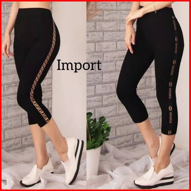 Celana Leging Pendek 7per8 Lis Jahit Strip Merk Legging Import Highwaist Fit To 80kg